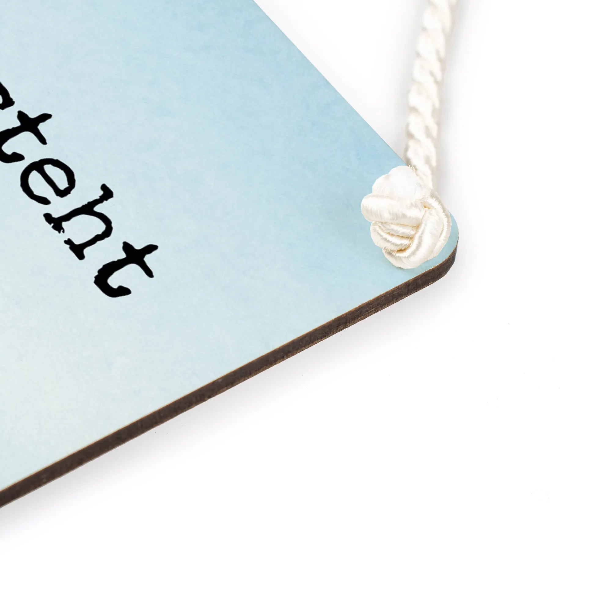 Verleihe deinem Zuhause mit einem personalisierten Deko Schild von Mr. & Mrs. Panda eine besondere Note! Dieses Schild ist mit charmanten Sprüchen und niedlichen Motiven versehen und lässt sich ganz nach deinen Wünschen anpassen. Ob du ein Familiennamen oder eine liebe Botschaft aufdrucken möchtest – die Möglichkeiten sind vielfältig. Mit Abmessungen von 210 mm x 297 mm ist es kompakt und passt in jede Ecke deines Zuhauses. Das Schild besteht aus hochwertiger beschichteter Holzfaser, die nicht nur langlebig ist, sondern auch einen edlen Look bietet. Dank der speziellen Beschichtung der Oberfläche ist es darüber hinaus sehr pflegeleicht. Ideal für die Tür oder als Wanddekoration, es dient sowohl als dekorativer Blickfang als auch als nützlicher Wegweiser. Die schöne, gedrehte Kordel macht das Aufhängen des Schildes ganz einfach und trägt zum Gesamtbild bei.