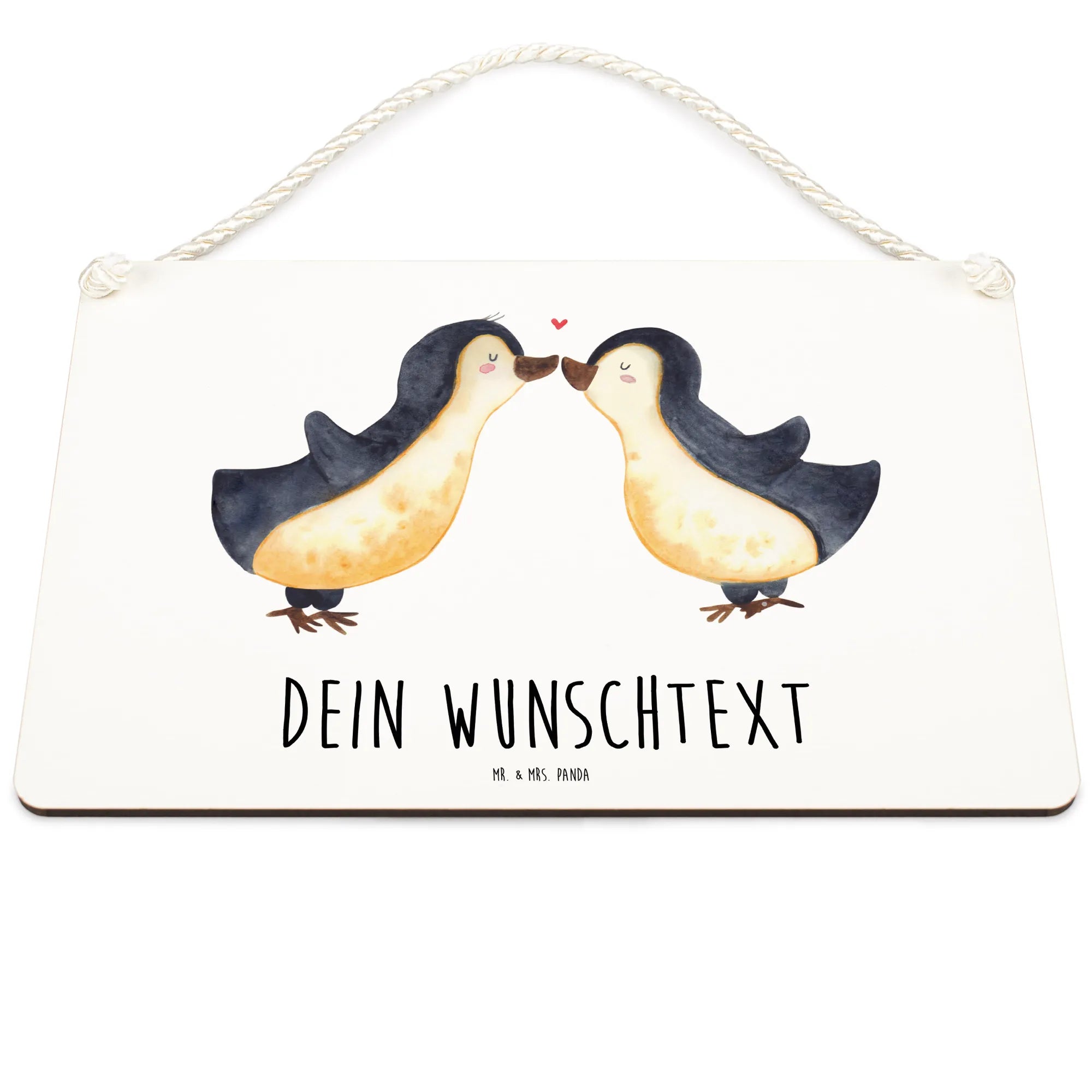 Personalised decorative sign Penguins in love - DIN A6 - White