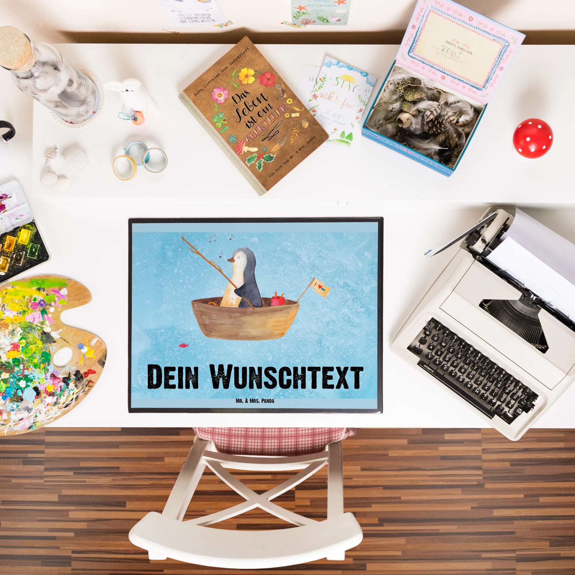 Personalised desk pad Penguin fishing boat
