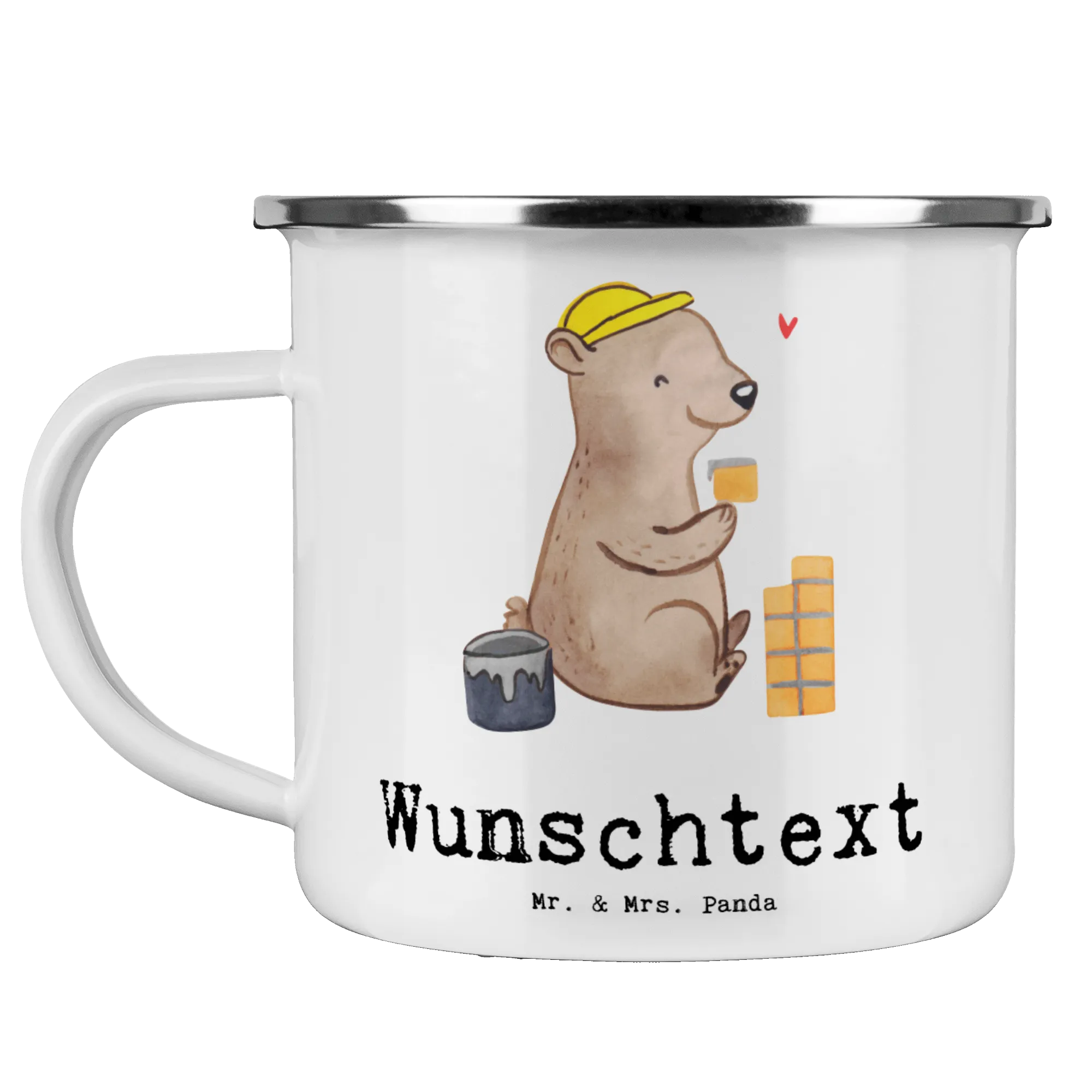 Personalised enamel cup bricklayer heart