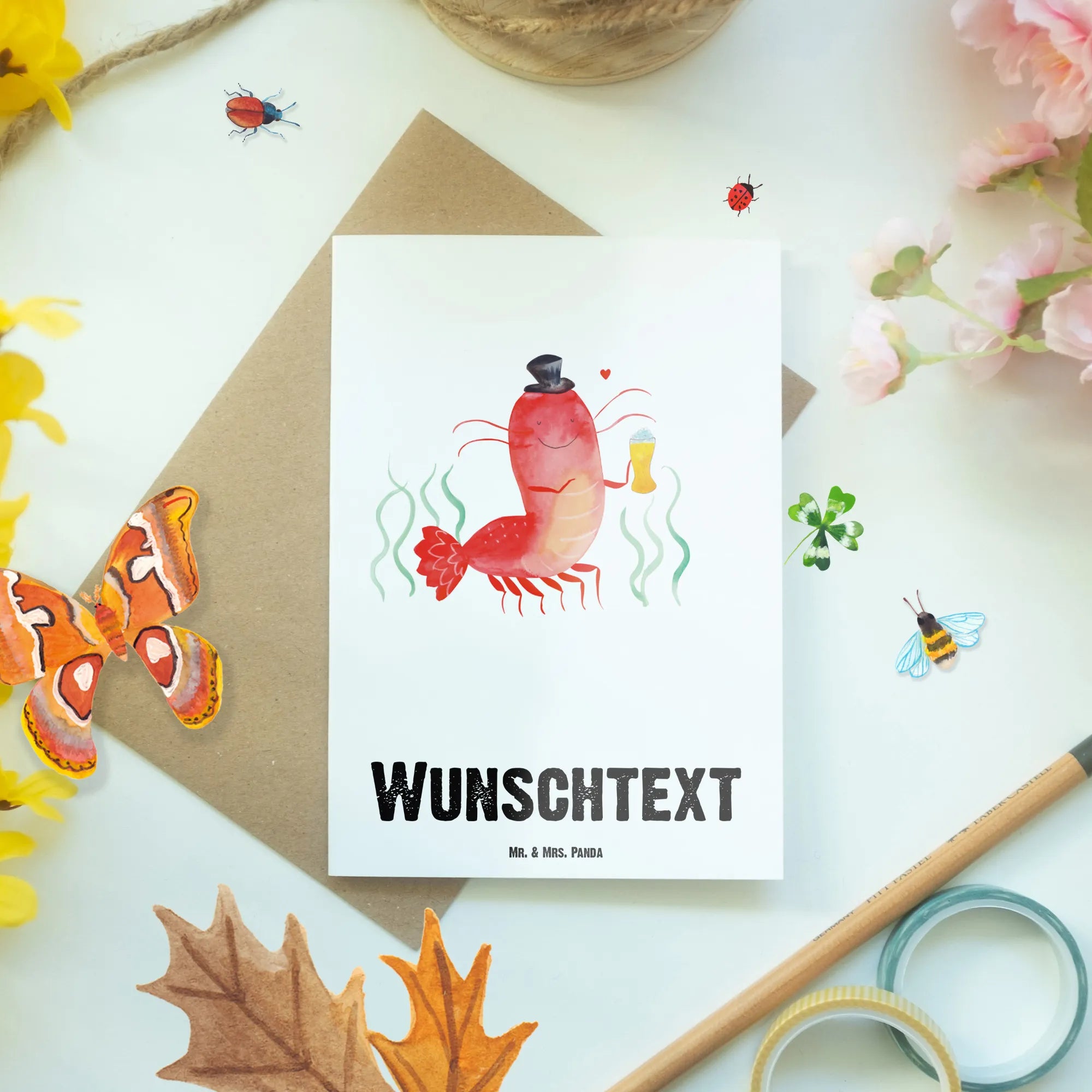 Personalised greetings card lobster Wheat – Mr. & Mrs. Panda