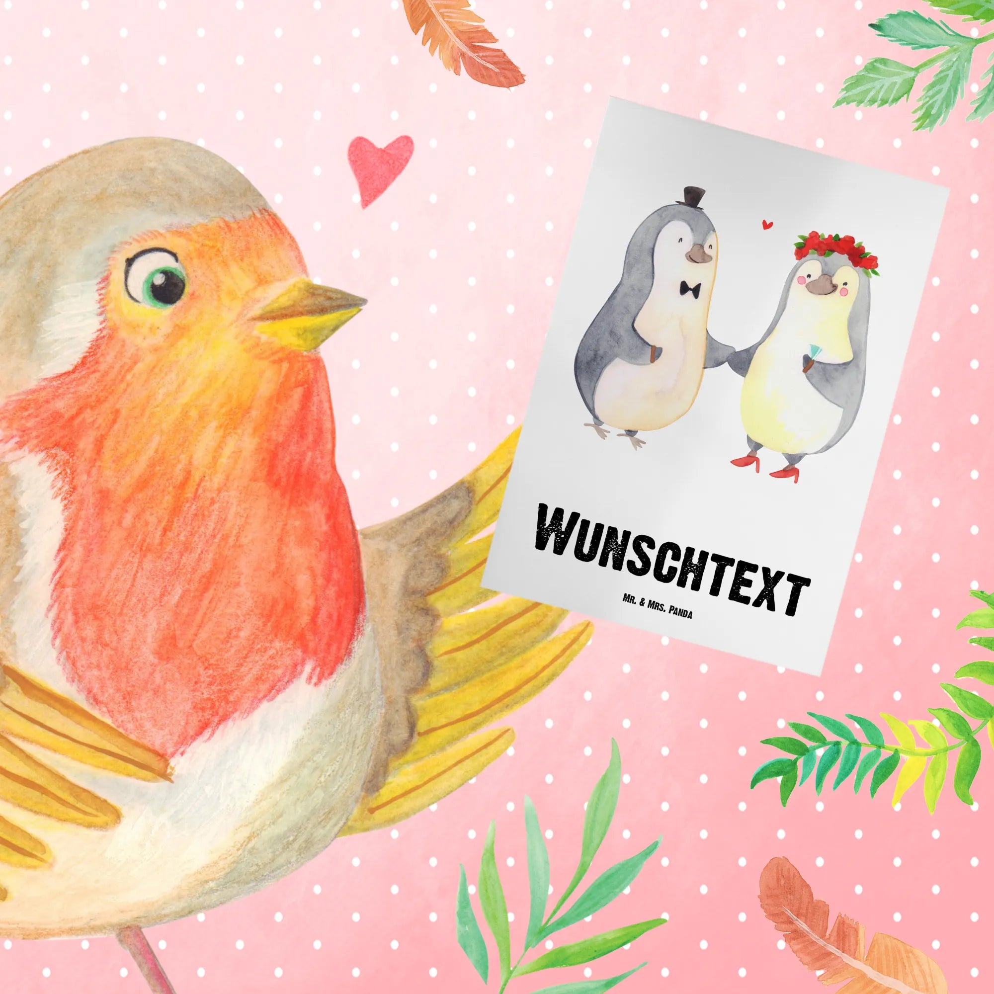 Imagine a charming wedding scene featuring an adorable penguin couple, holding flippers with endless love. The bride penguin sports a beautiful veil and a floral crown, while her groom wears a dapper hat, all illustrated in soft watercolor. This motif says it all: 'Für mich seid ihr das tollste Paar. Und ab jetzt für immer. Das ist wunderbar. Alles Liebe zur Hochzeit!' It’s the perfect unique wedding gift to celebrate love and togetherness, making it an ideal guest gift for a special celebration or a heartfelt piece for your own collection.