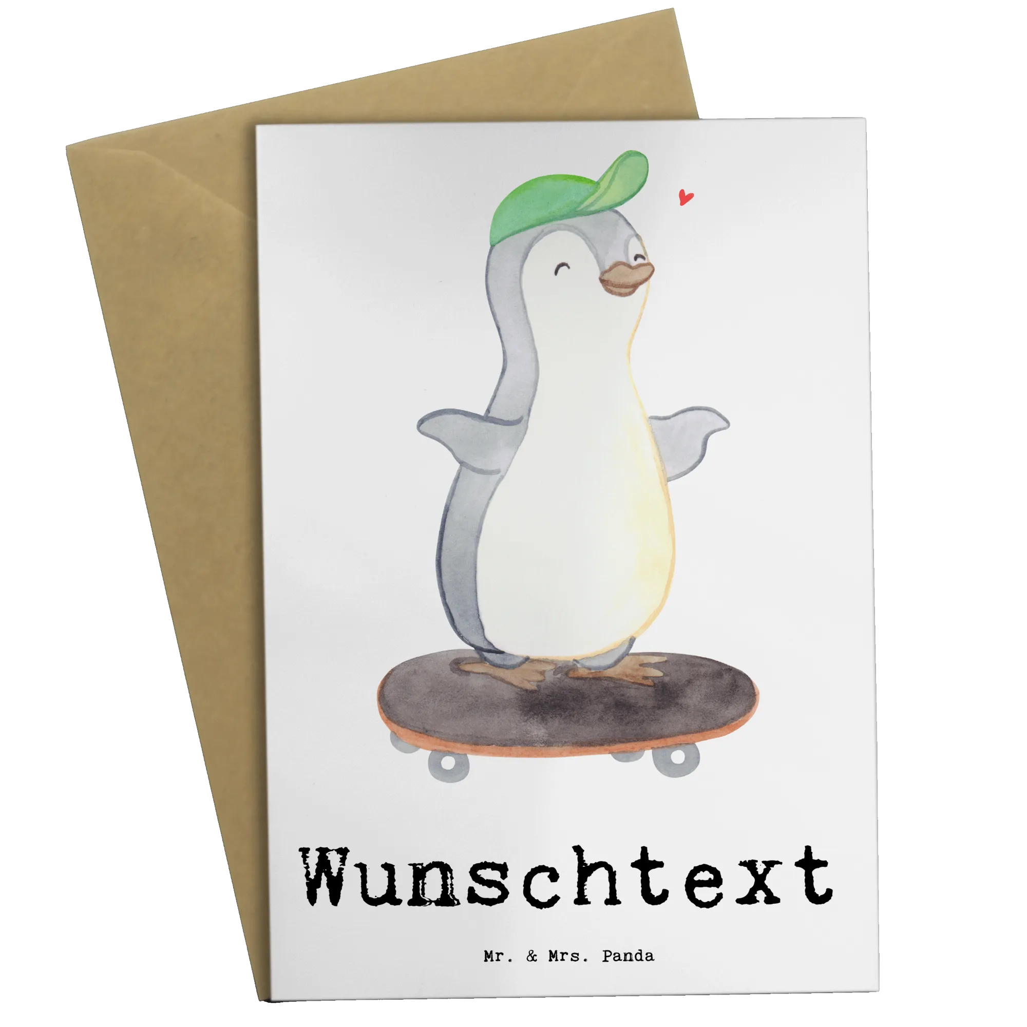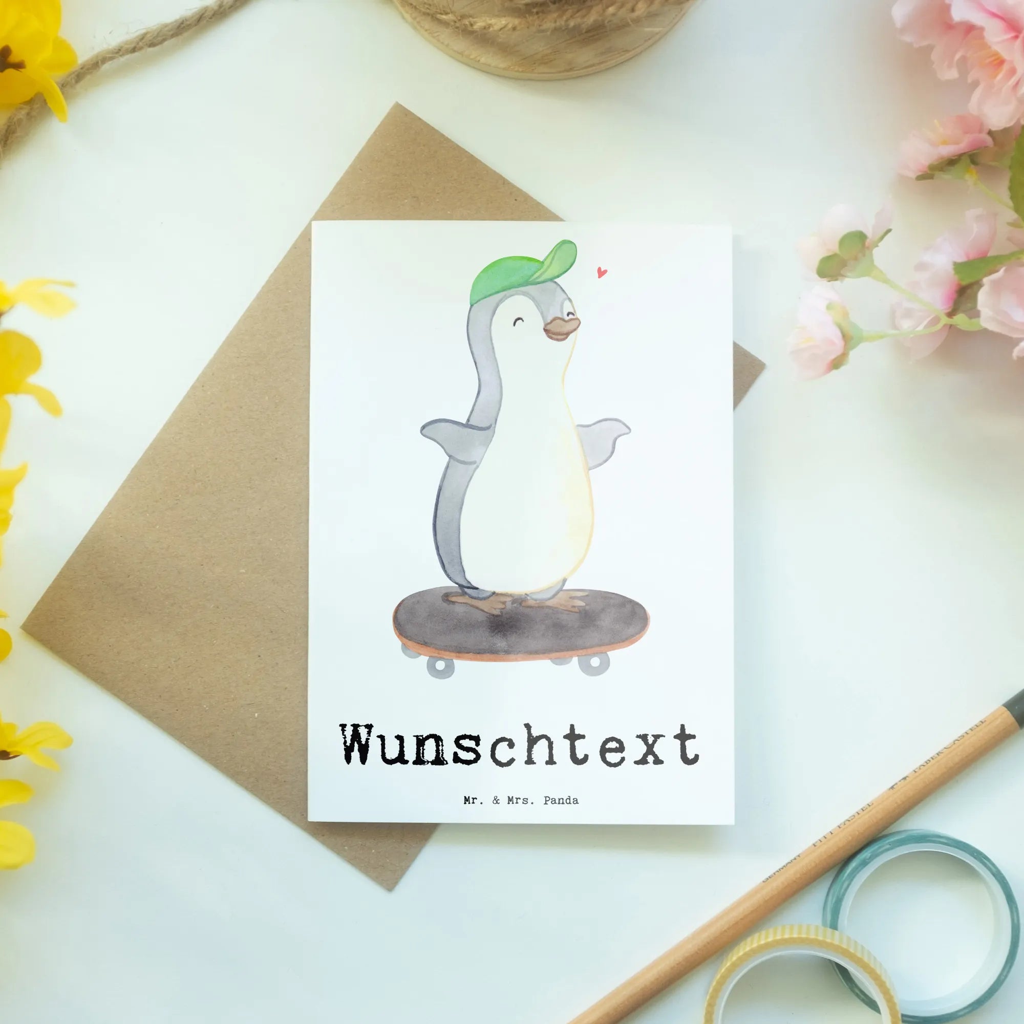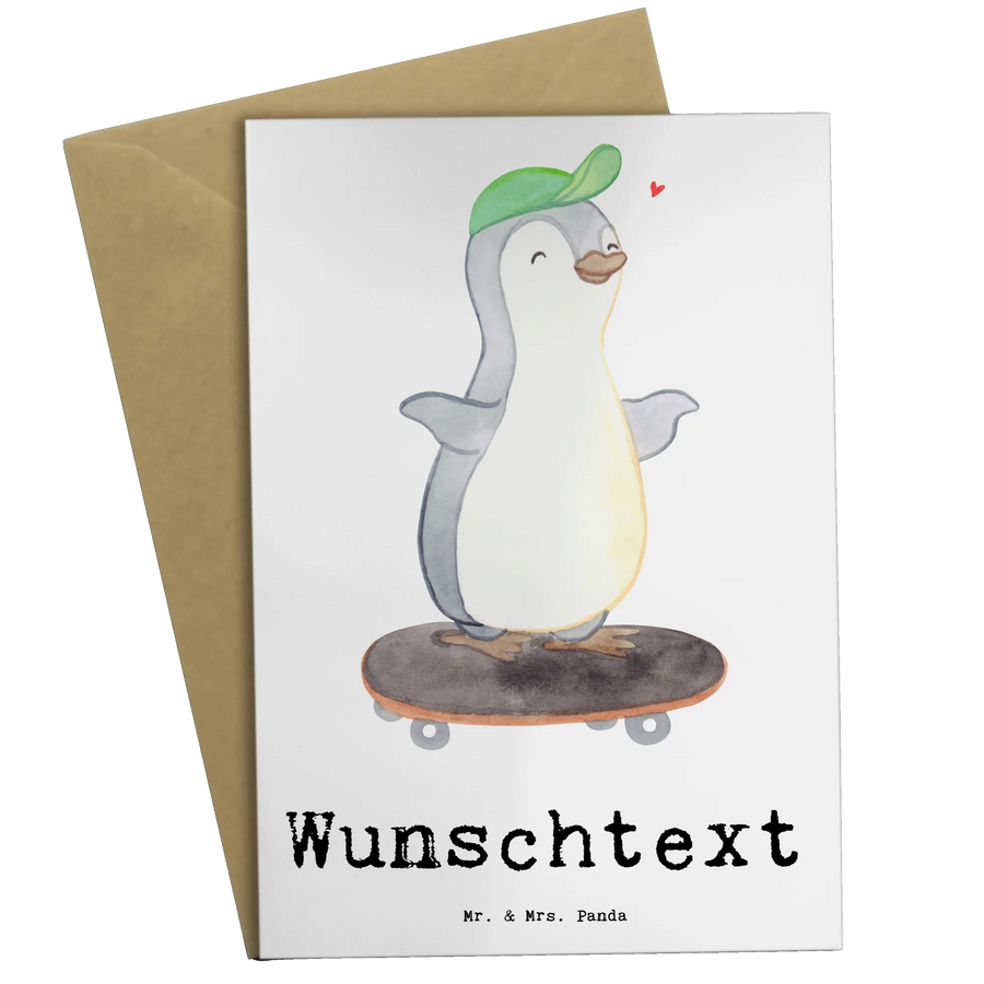 Personalised greetings card penguin skateboarding – Mr. & Mrs. Panda