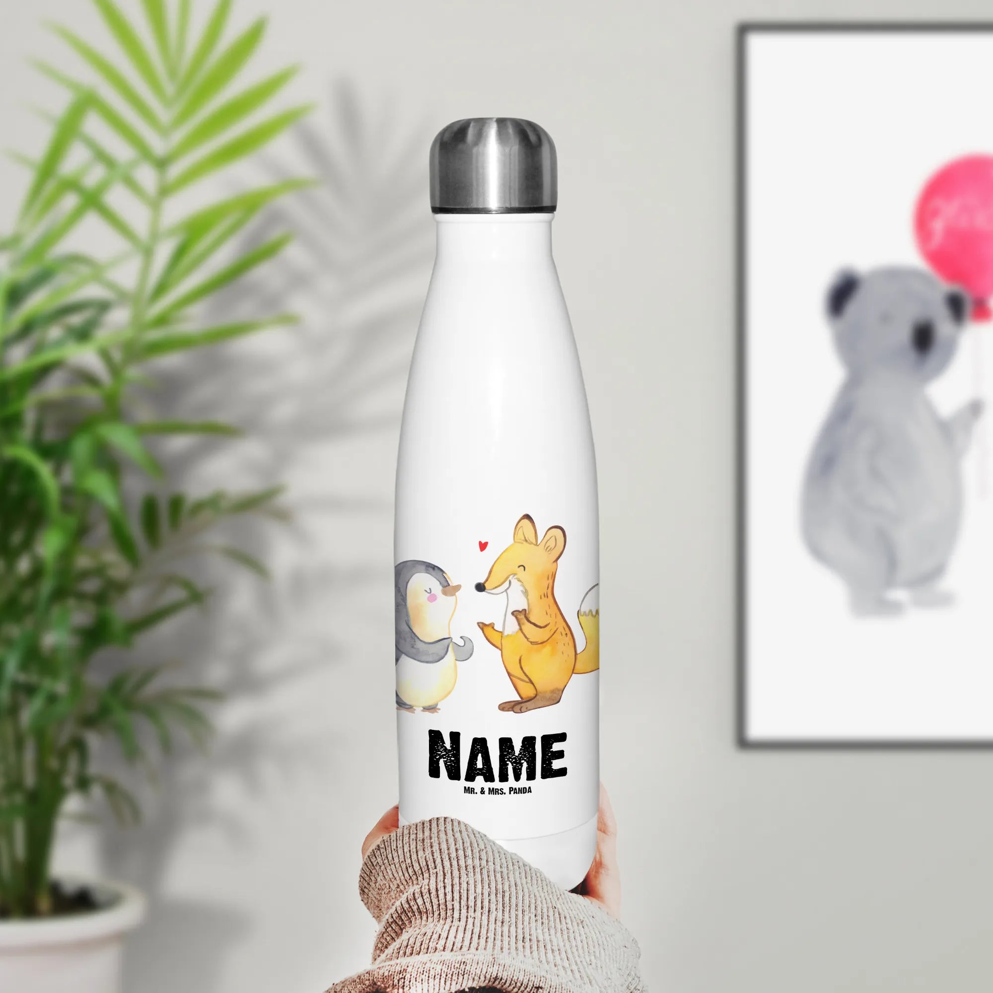 Personalised insulated bottle Fox & Penguin deaf