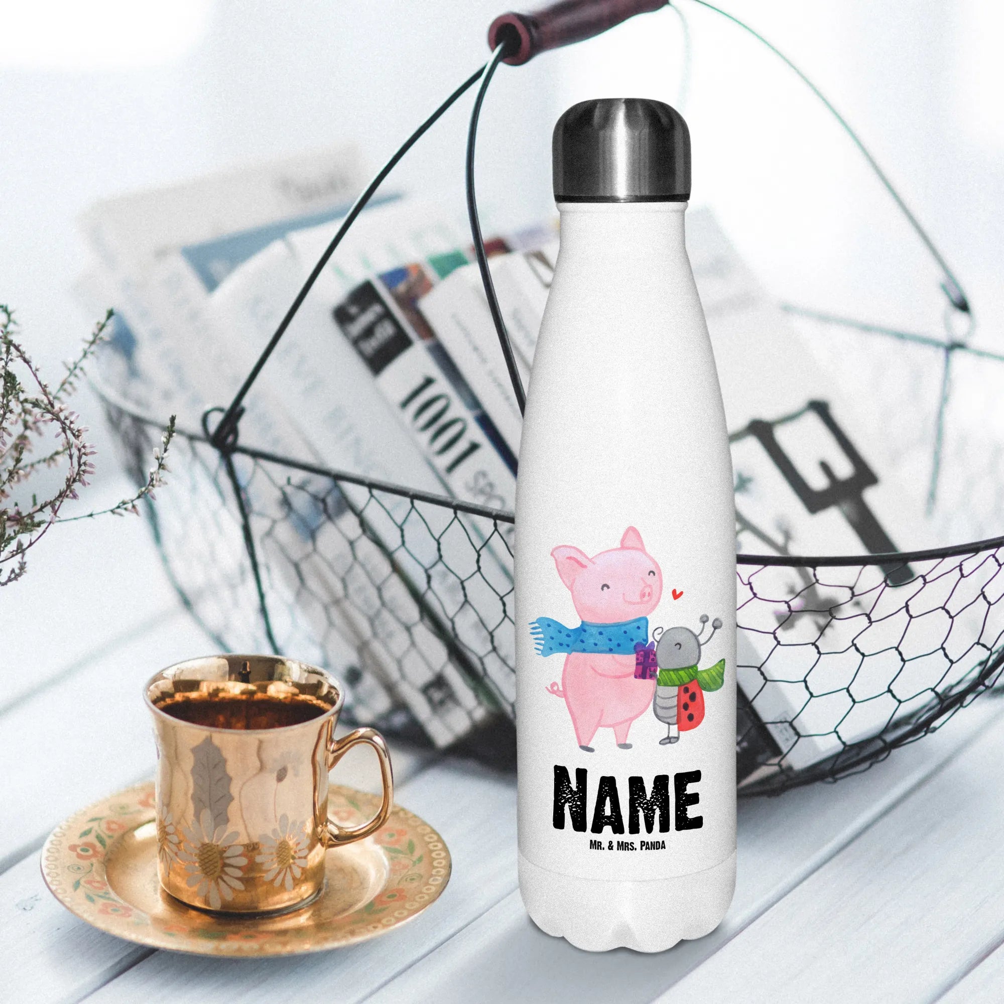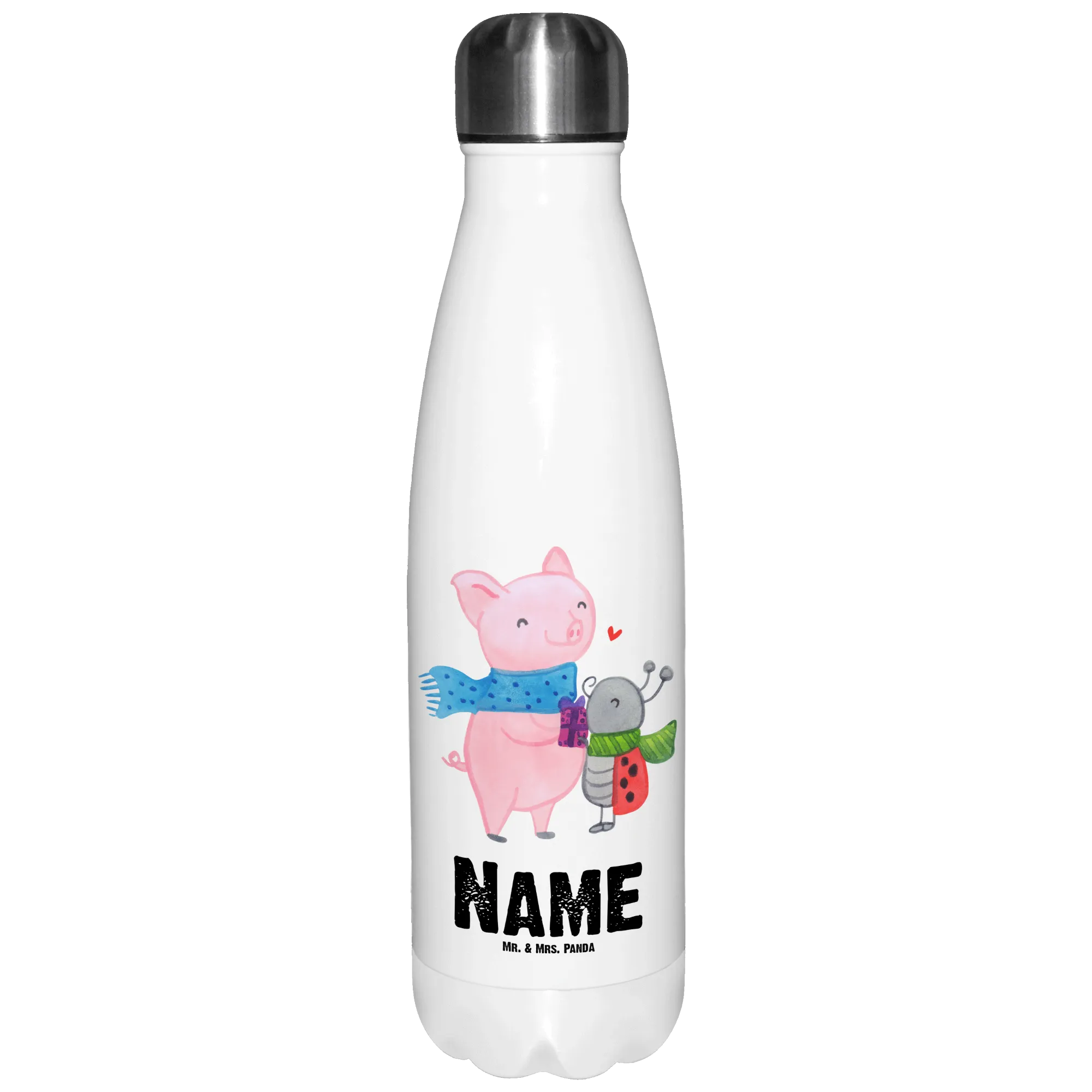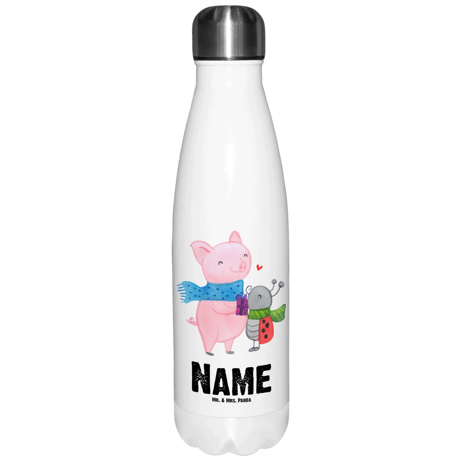 Personalised insulated bottle Glow Pig Snuggle Winter, Christmas, Christmas time, snow