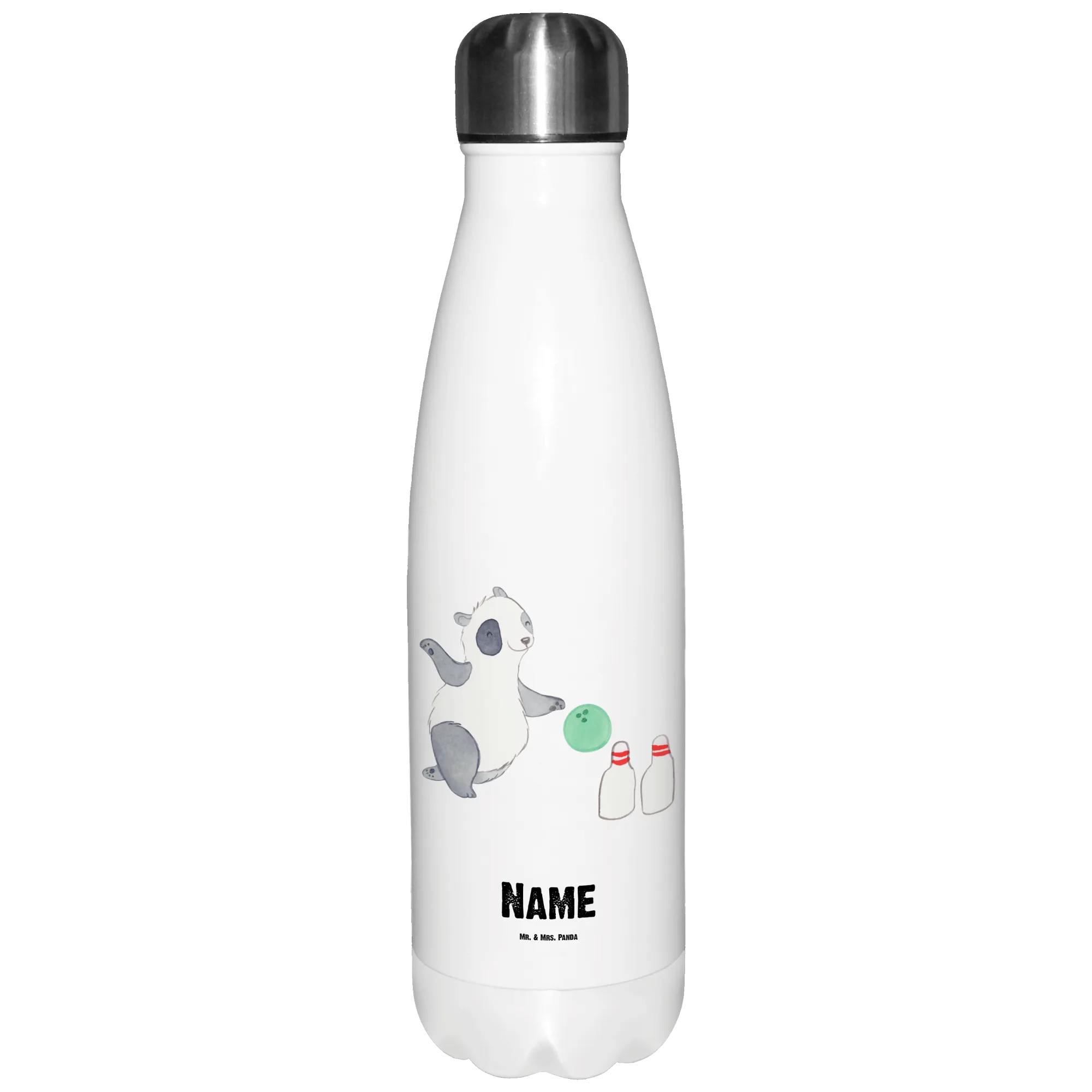 Personalised insulated bottle panda bowling