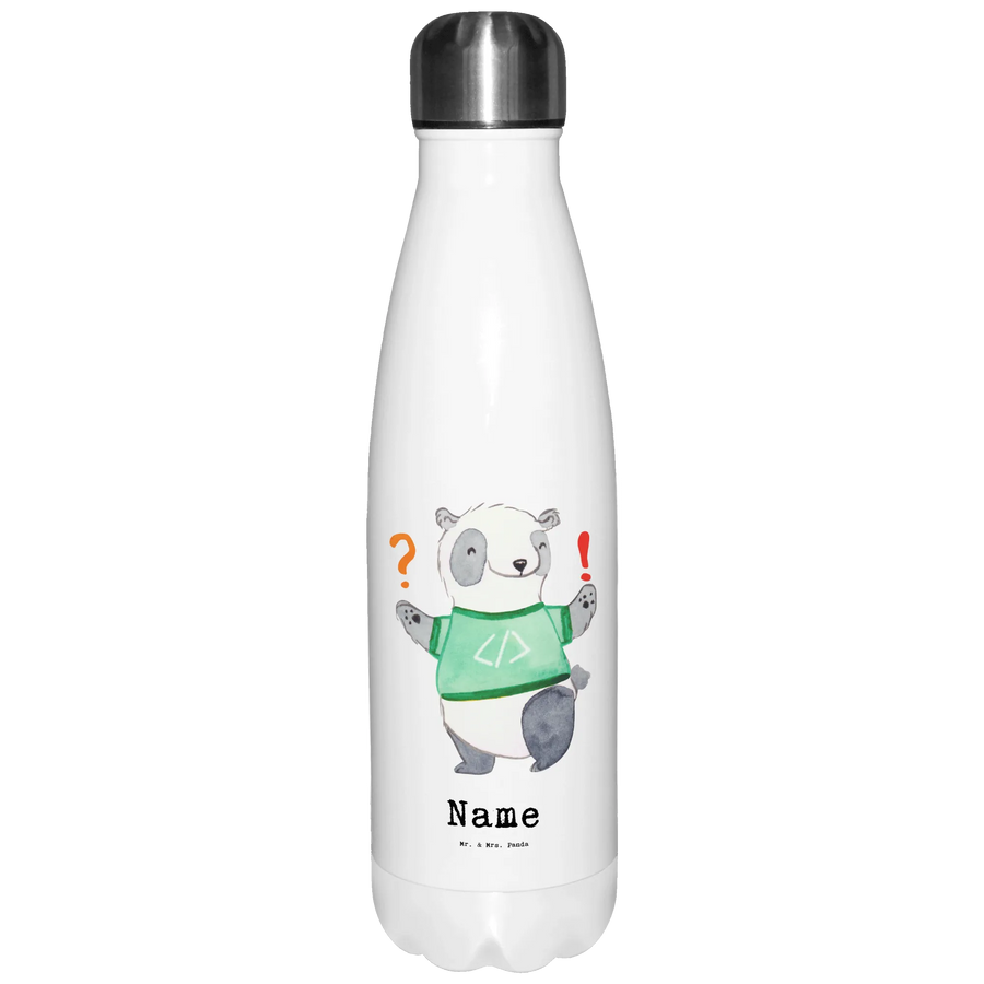 Introducing our delightful personalised insulated bottle from Mr. & Mrs. Panda! This charming piece is perfect for keeping your drinks at just the right temperature, whether you're sipping hot coffee on a chilly morning or enjoying refreshing iced tea during a sunny outing. Crafted from high-quality double-walled stainless steel, this bottle features a sleek design with adorable prints and fun quotes from our beloved characters. Measuring at 270 mm (11 inches) tall and 70 mm (3 inches) in diameter, it has a generous capacity of 500 ml (17 oz), making it an ideal companion for work, school, or your next adventure! Lightweight yet robust, it’s designed to withstand bumps and drops while fitting snugly in your bag. With our convenient screw cap, you can enjoy peace of mind while you're on the go. Plus, this insulated bottle ensures that your hot drinks stay hot for hours and your cold drinks stay chilly, perfect for hikes, picnics, or just hanging out at home. Remember to hand wash it to keep it looking fabulous, and avoid any harsh scrubbing to maintain its shine. Get ready to personalize yours with your chosen name or message, making it truly one-of-a-kind!