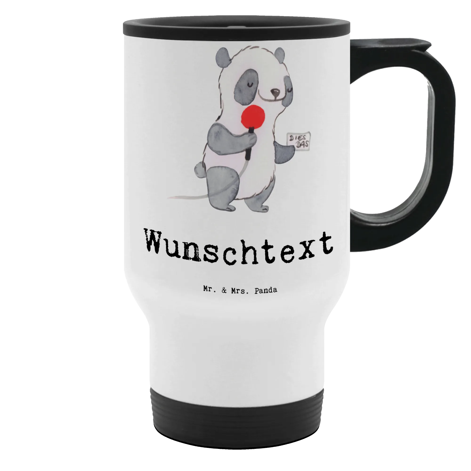 Sip joyfully with our Personalised Insulated Mug from Mr. & Mrs. Panda! This delightful travel mug, made from stainless steel and plastic, stands 150 mm tall and has a diameter of 85 mm, perfect for your daily coffee or tea. With a generous capacity of 390 ml, this mug features cute designs and can be personalized with your desired name or catchphrase. It's perfect for both hot beverages and is lightweight at only 245 g, ideal for carrying around. Enjoy the convenience of a 45° rotating lid to easily open and close your drink spout without spills. Plus, it fits snugly in your car's cup holder for your morning commute. Note that it isn't dishwasher-safe and should be hand washed to keep it looking its best. Make every sip special with this charming, robust travel companion!