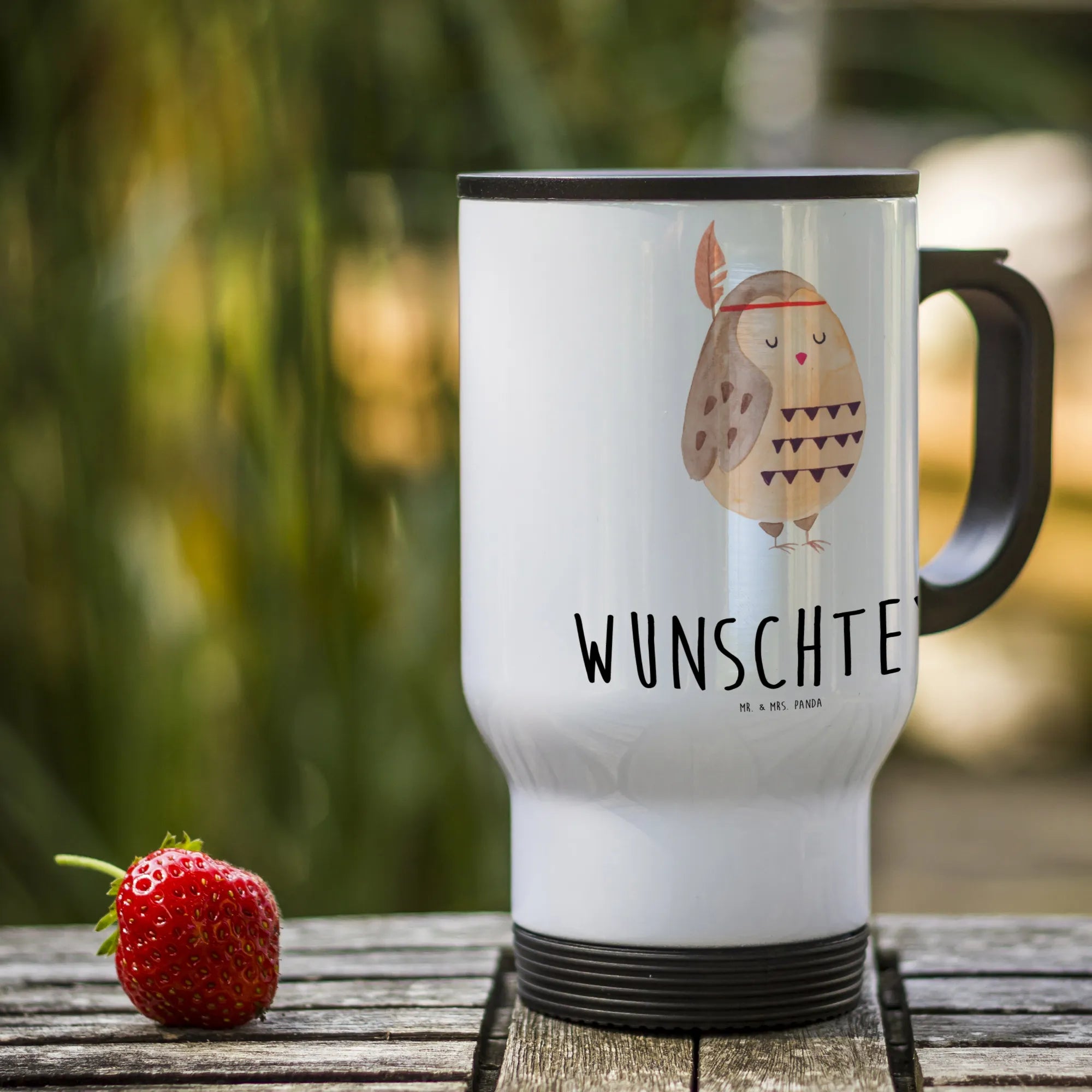 Personalised insulated mug Owl feather headdress – Mr. & Mrs. Panda