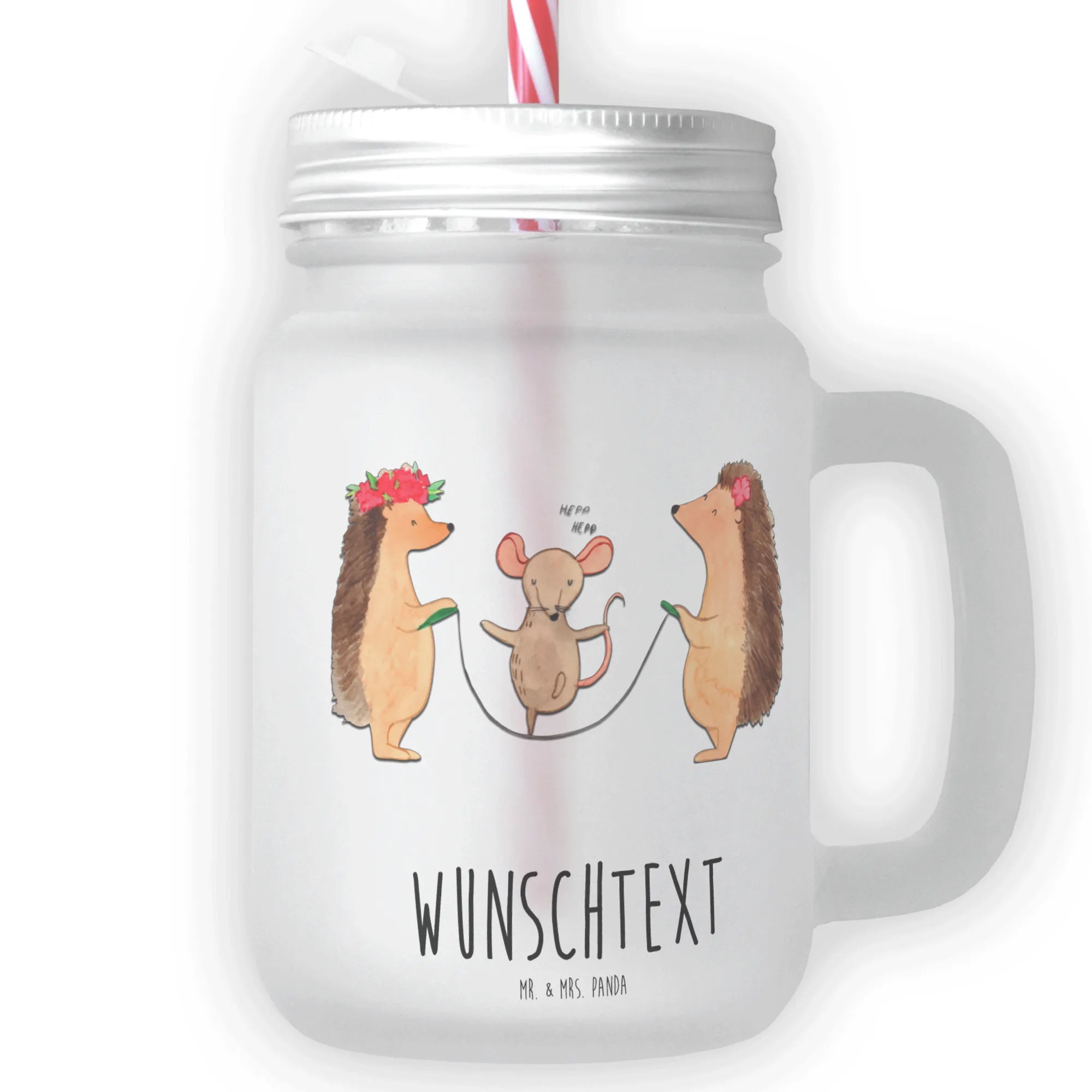 Personalised mason jar drinking glass Hedgehog skipping