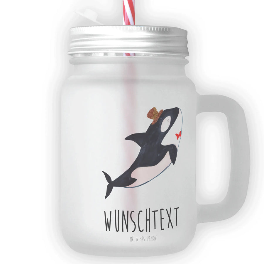 Personalised mason jar drinking glass orca cylinder