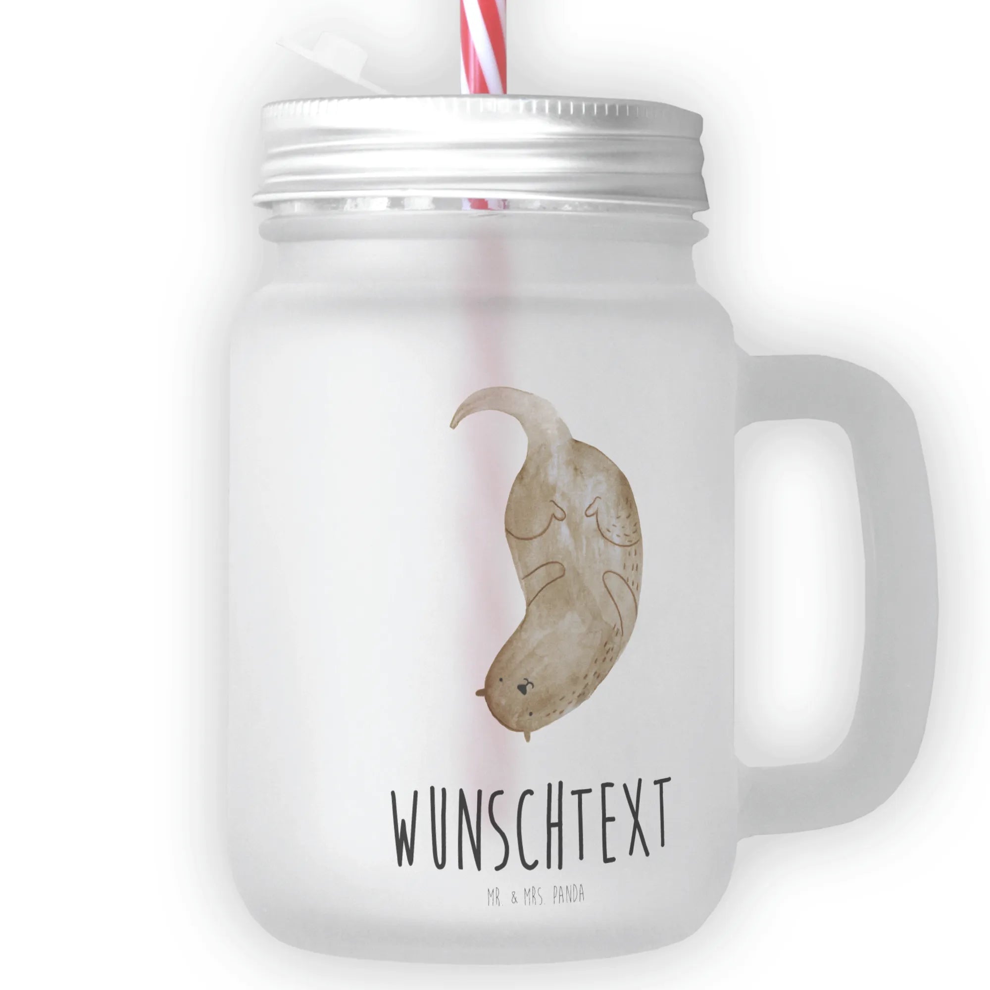 Personalised mason jar drinking glass otter upside down