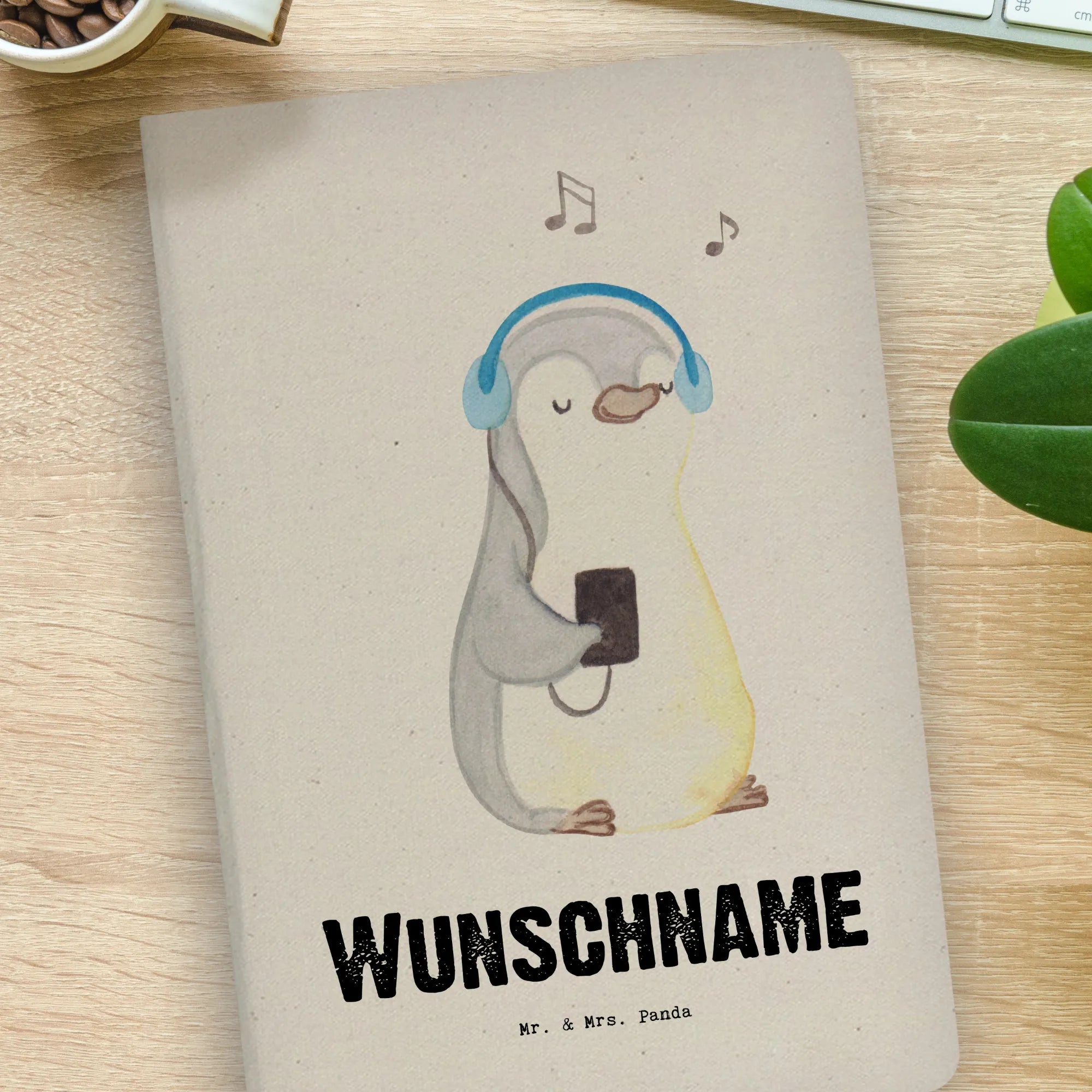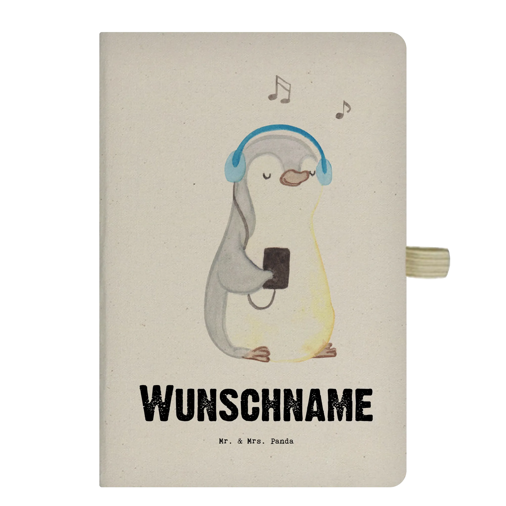 Personalised notebook penguin listen to music Gift, sport, hobby, giving, thank you, award, profit, athlete, listening to music, favorite song