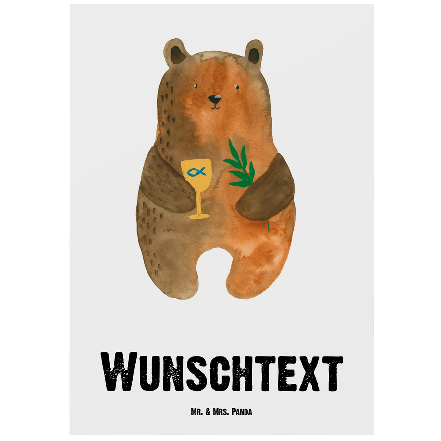 Our delightful Confirmation Bear is here to bring a smile to every confirmation celebration! He proudly holds a golden chalice and a branch, symbolizing the joy and significance of this sacred occasion. This motif perfectly captures the essence of confirmation, a time for reflection and commitment in the church community. With 'Alles Gute zur Konfirmation' written in a warm and inviting font, it adds a cheerful touch to this important event. Whether it's displayed at the church service or given as a thoughtful gift, this bear embodies the spirit of togetherness and support that makes confirmation such a memorable experience. Let his charm and positivity remind everyone of the journey of faith that lies ahead.