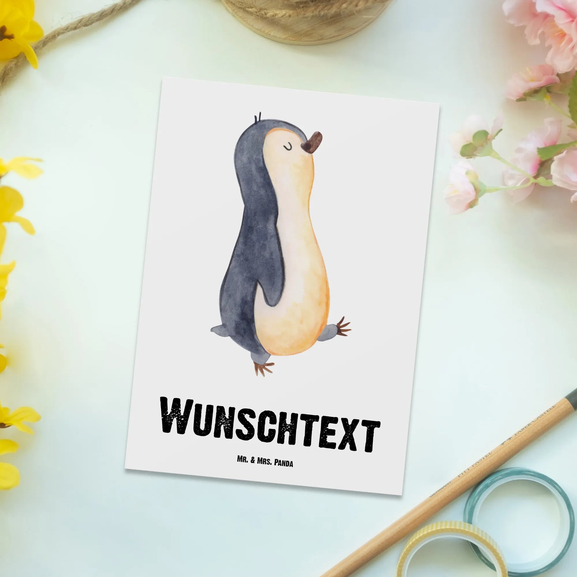 Delight in the joy of giving with our Personalised Postcard from Mr. & Mrs. Panda! This charming postcard, measuring 150 mm x 100 mm, combines adorable art with witty sayings to bring a smile to anyone’s face. Make it truly yours by personalizing it with a name or a unique message. Ideal for special occasions like birthdays, weddings, or baptisms, its blank back gives you the freedom to express yourself creatively. Printed with top-quality ink, the vibrancy of the colors will last for ages. With a glossy finish on the front and a matte back that's easy to write on, this high-quality cardboard postcard will make a cherished keepsake for your loved ones!