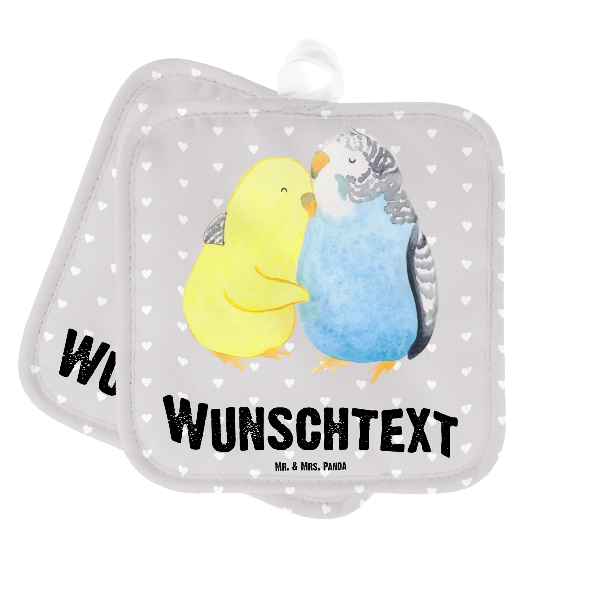 Personalised pot holder Parakeets in love – Mr. & Mrs. Panda
