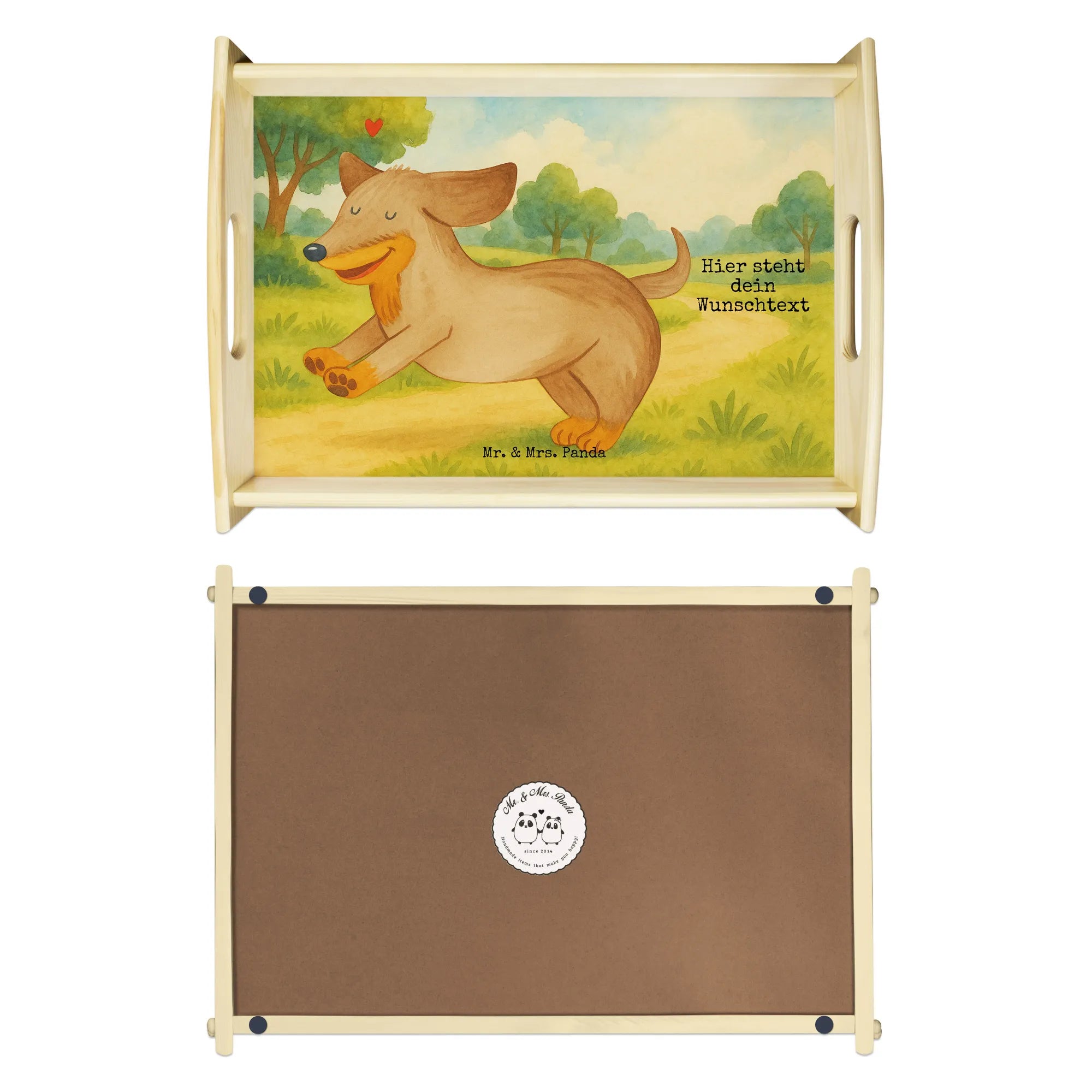 Wähle deinen Wunschtext, gestalte dein Tablett mit Namen und schenke ein Stück Freude aus der Hunde Kollektion von Mr. & Mrs. Panda. Ein persönliches Geschenk, das täglich an gemeinsame Lieblingsmomente erinnert.