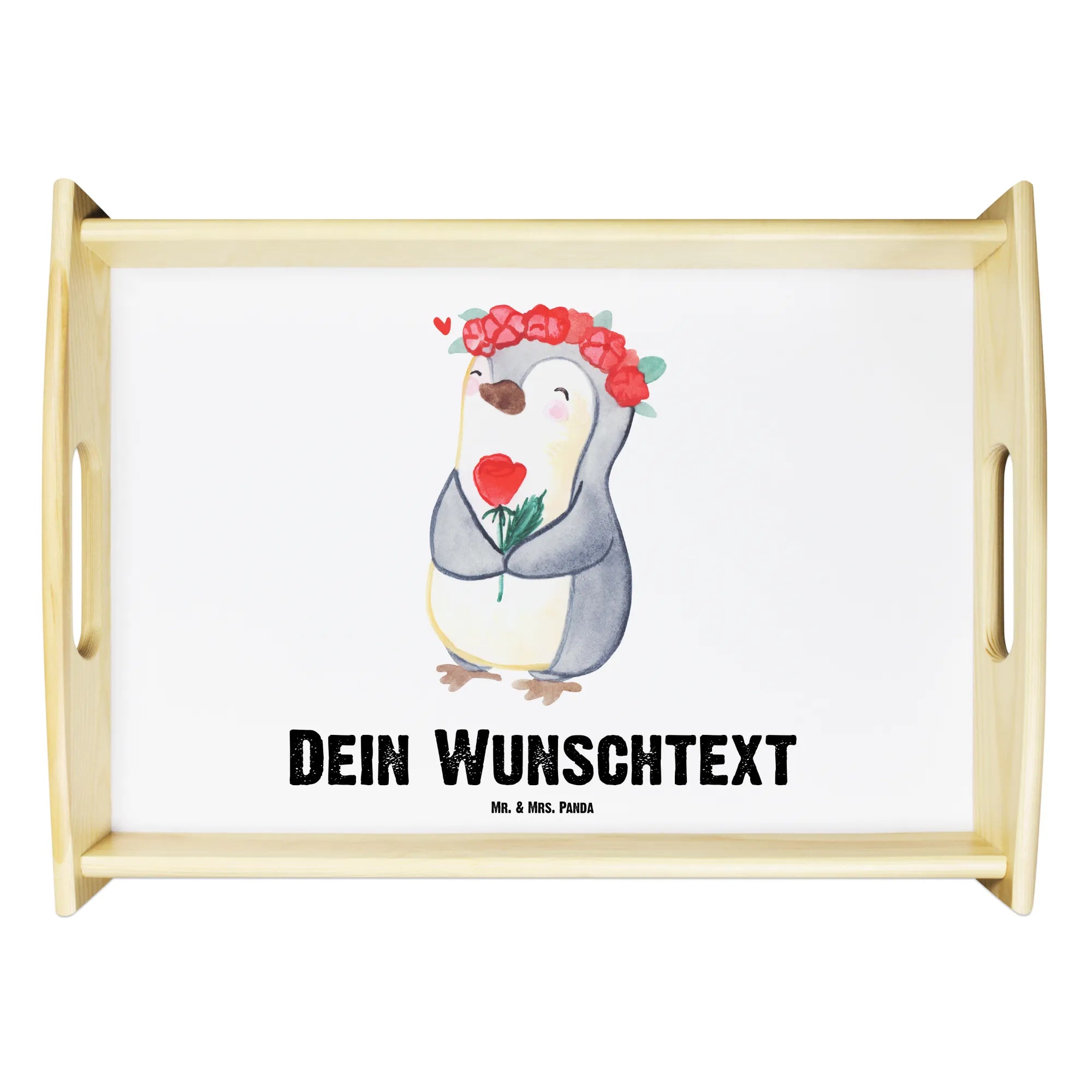 Discover the charm of our personalized serving tray by Mr. & Mrs. Panda! Crafted from beautiful, glazed real wood, this tray measures 480 mm x 365 mm x 65 mm, making it ideal for serving meals or snacks. It's adorned with lovely illustrations and quotes that you can personalize with your favorite names or messages. The clever design includes side grips for easy handling and anti-slip pads to prevent sliding. The resilient and scratch-proof surface maintains its vibrant look, and you can clean it easily with a damp cloth and mild soap—just avoid soaking! Take note that custom creations might take a bit more time to be ready. Treat yourself or your loved ones to a delightful dining experience with this exquisite tray!