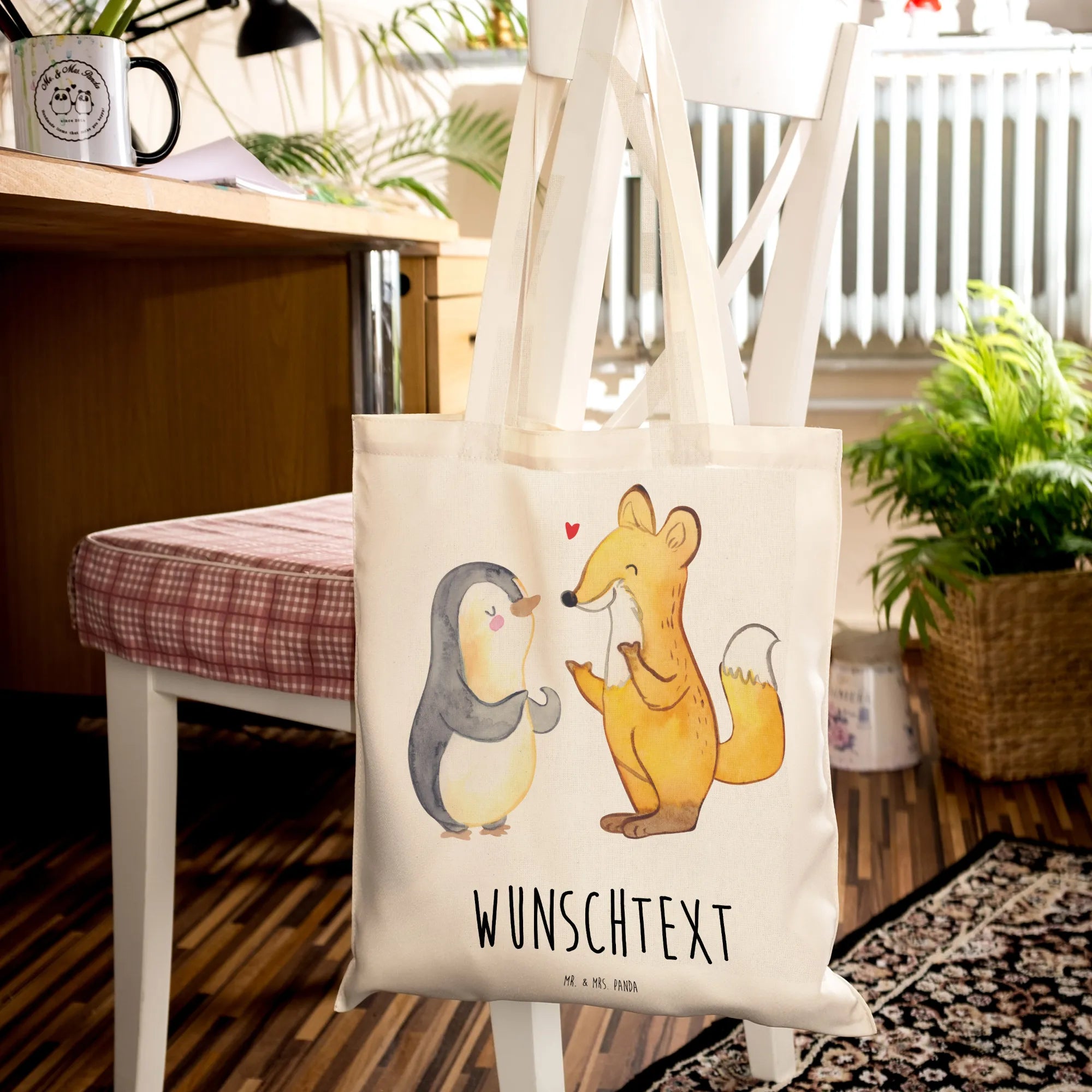 Personalised tote bag Fox & Penguin deaf – Mr. & Mrs. Panda