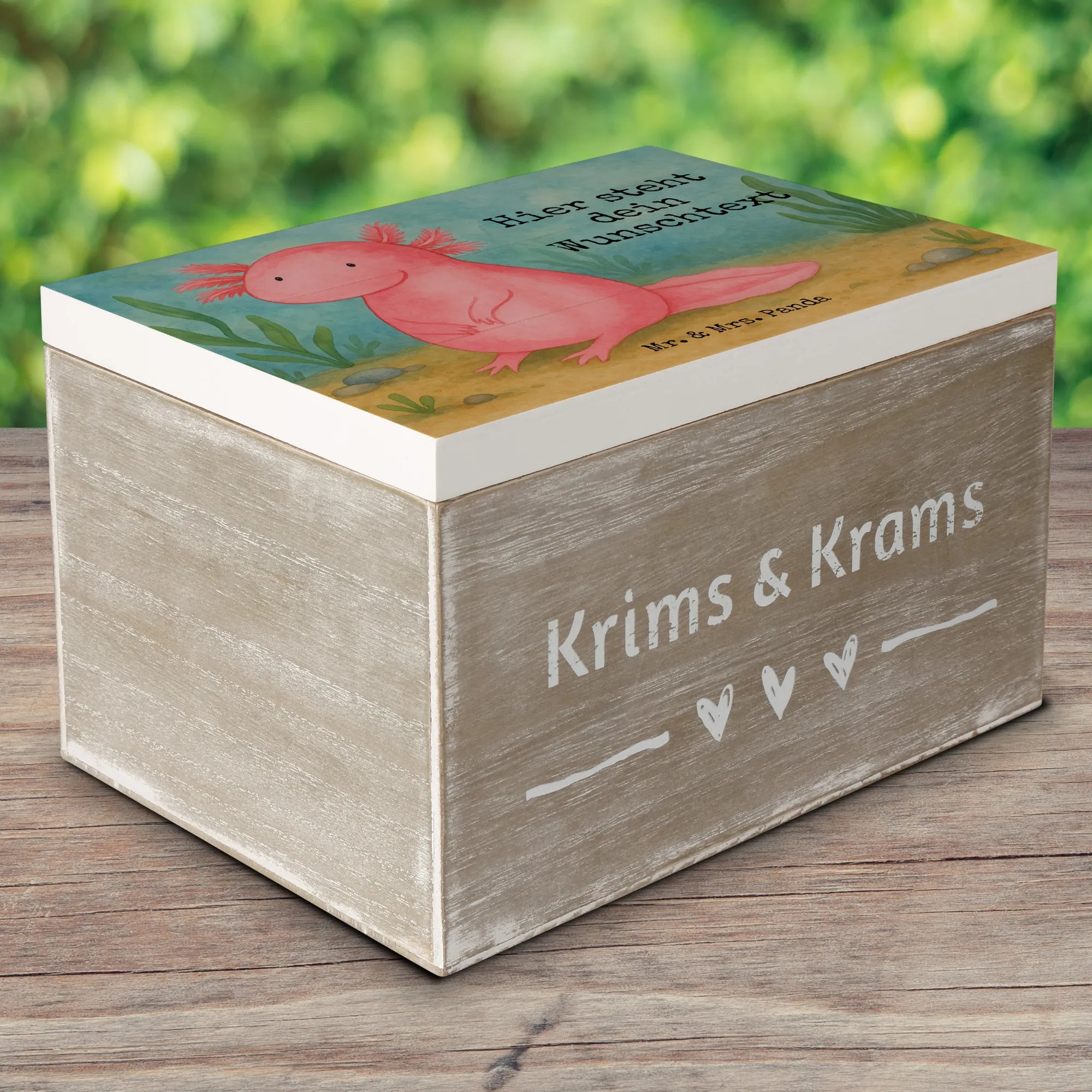 Personalised wooden chest axolotl zero Design - 22 x 15 cm