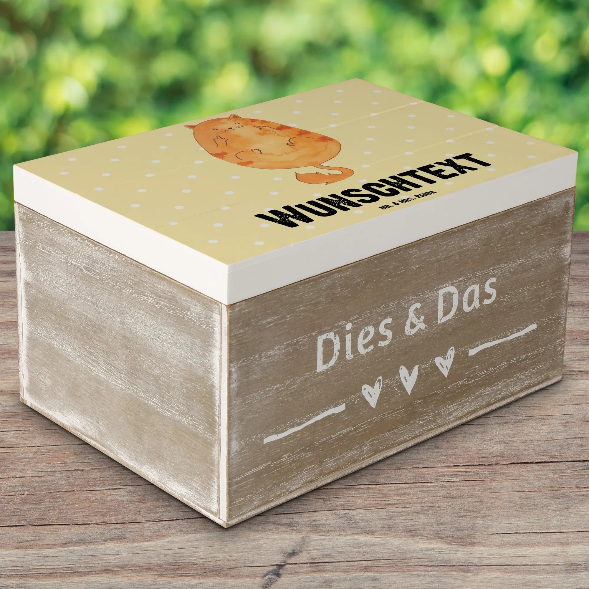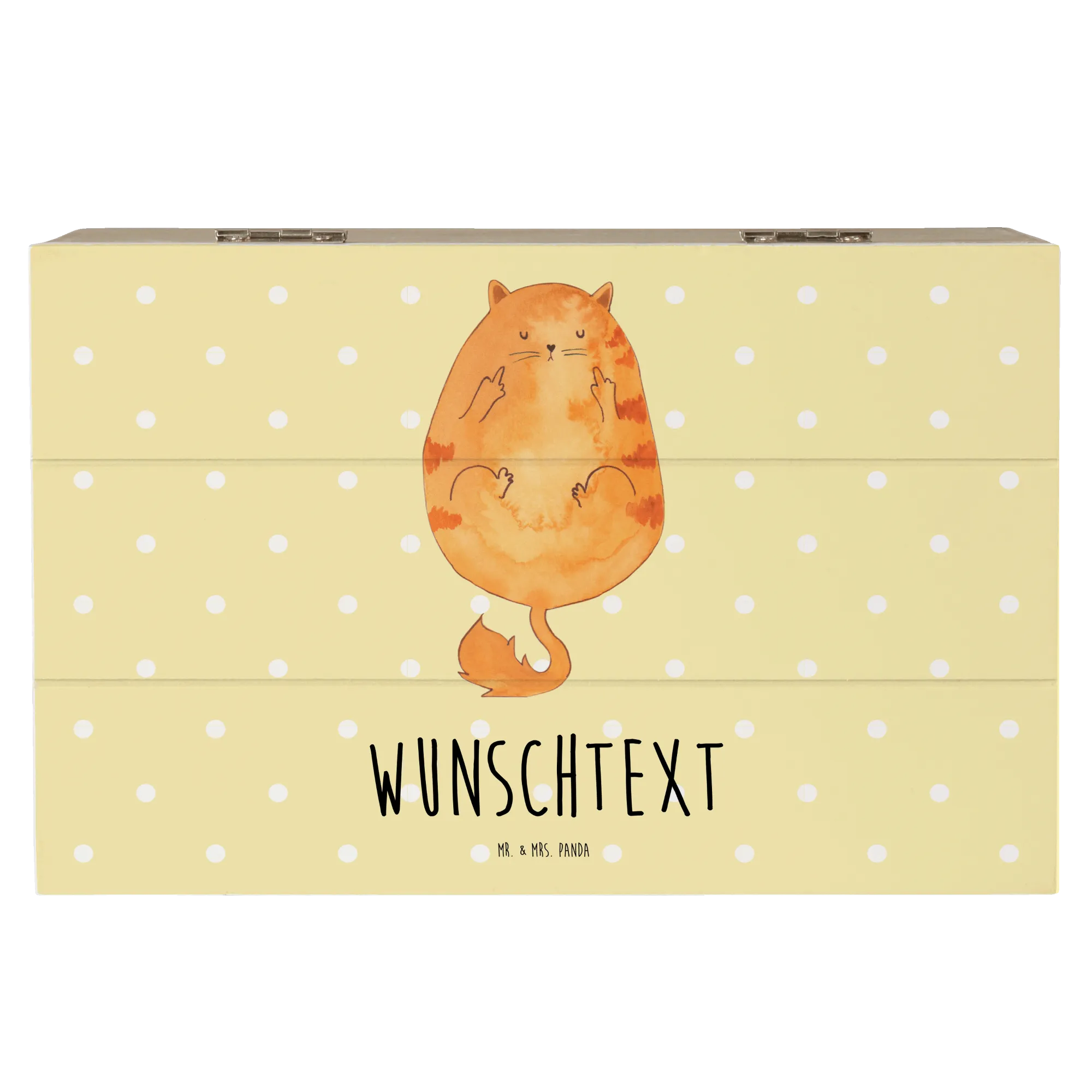 Personalised wooden chest Cat Early riser - 22 x 15 cm - White