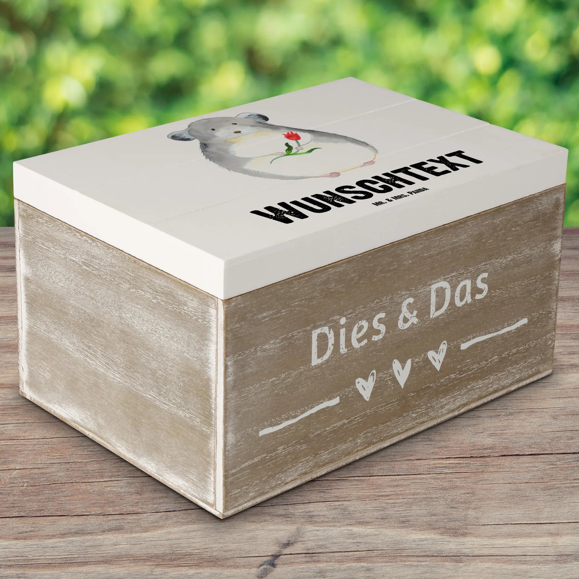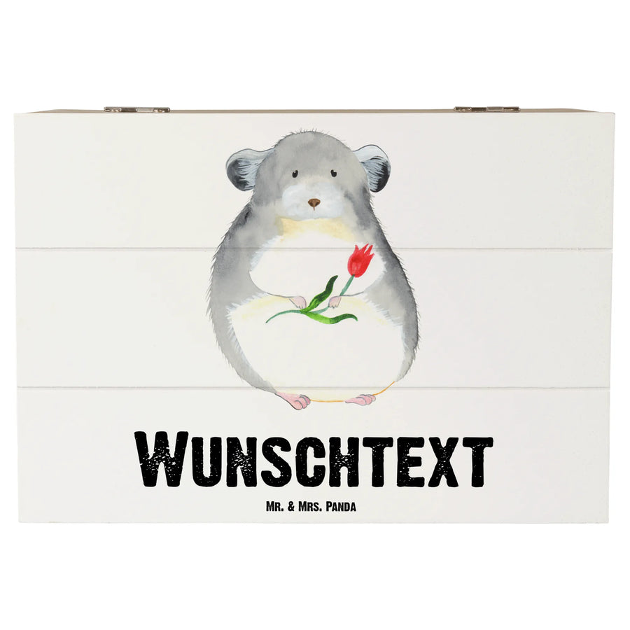 Personalised wooden chest chinchilla flower - 22 x 15 cm - White