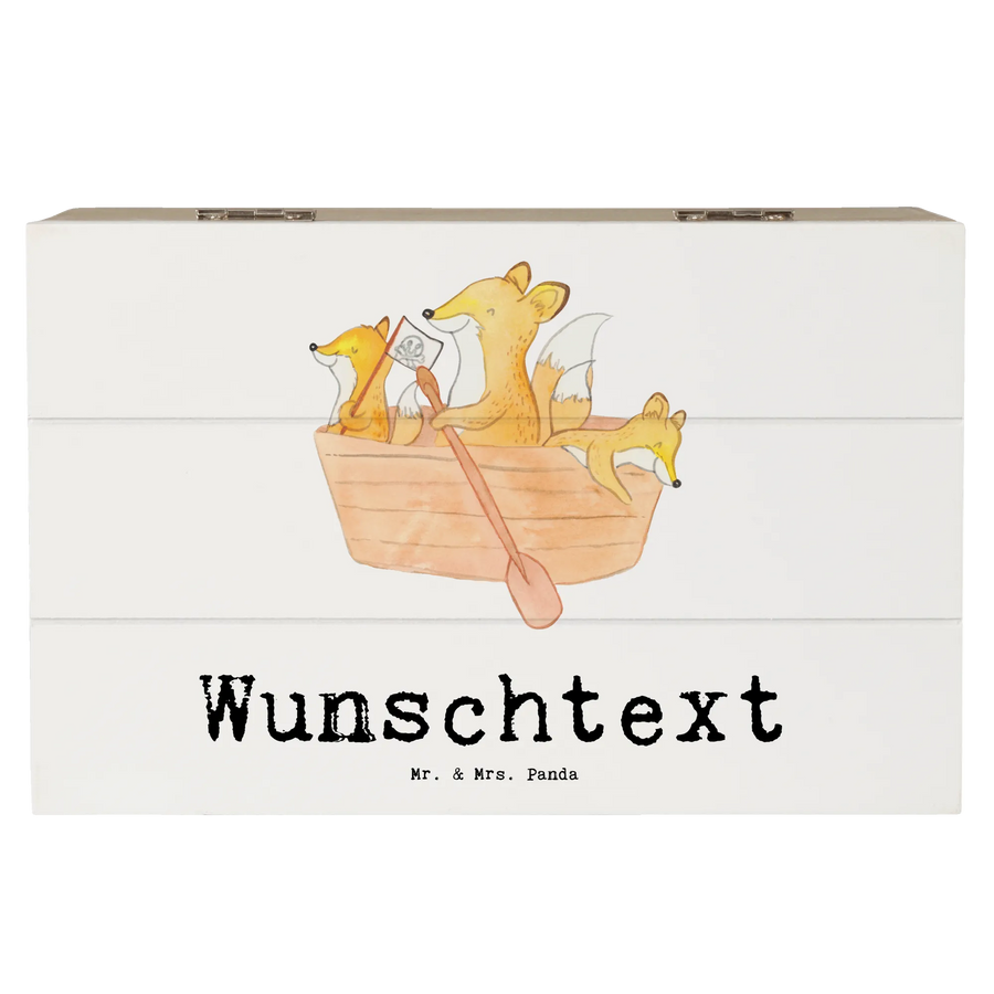 Personalised wooden chest Fox Canoeing - 19 x 12 cm - White