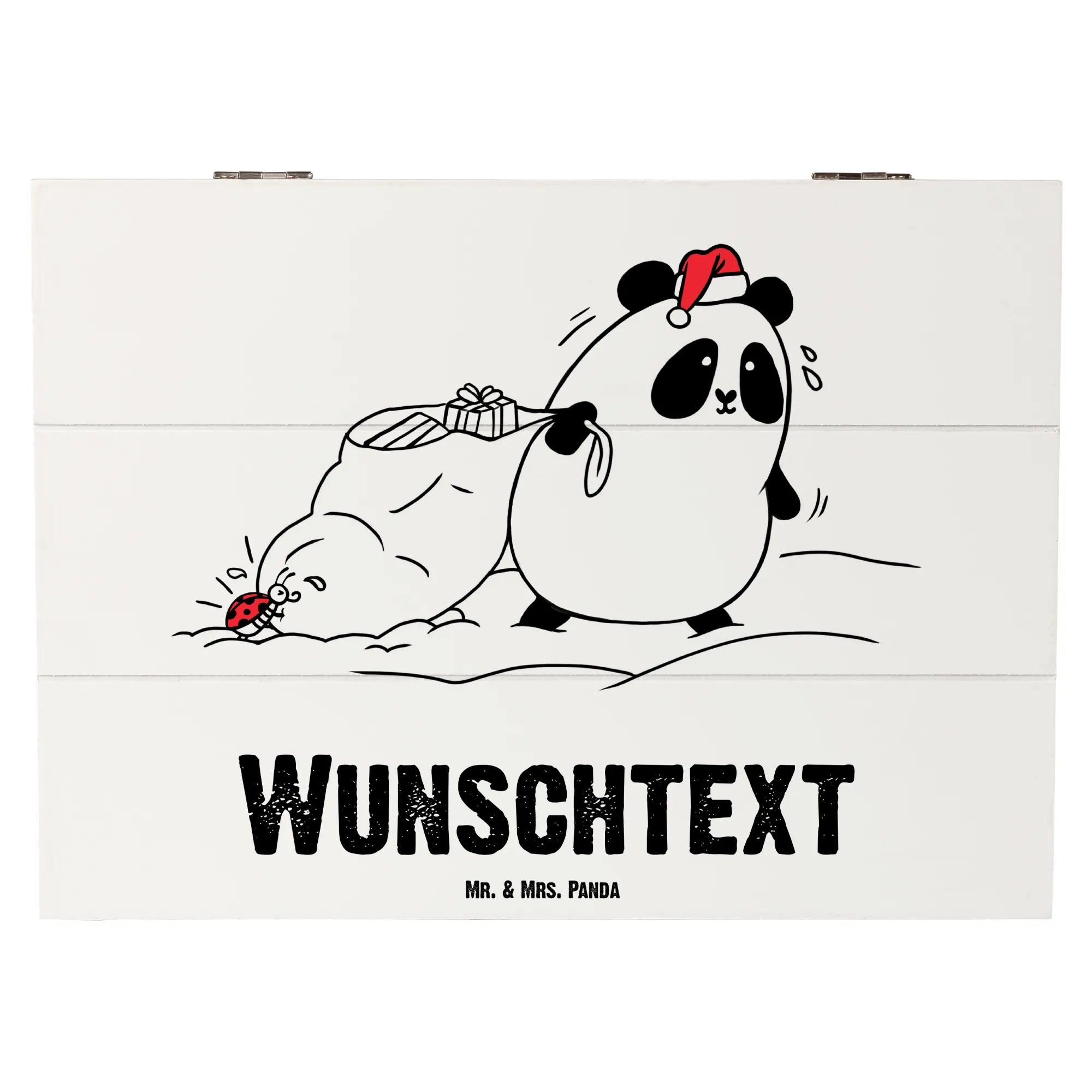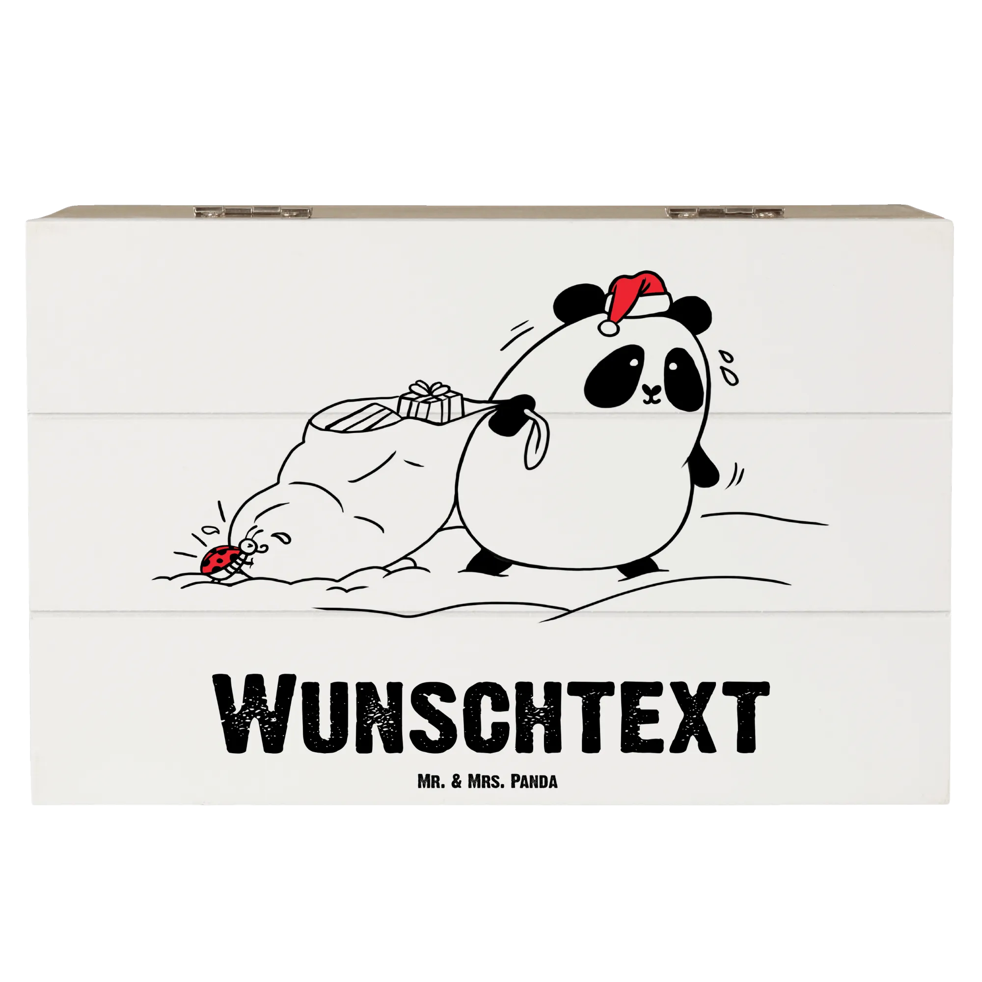 Personalised wooden chest Panda Christmas - 22 x 15 cm
