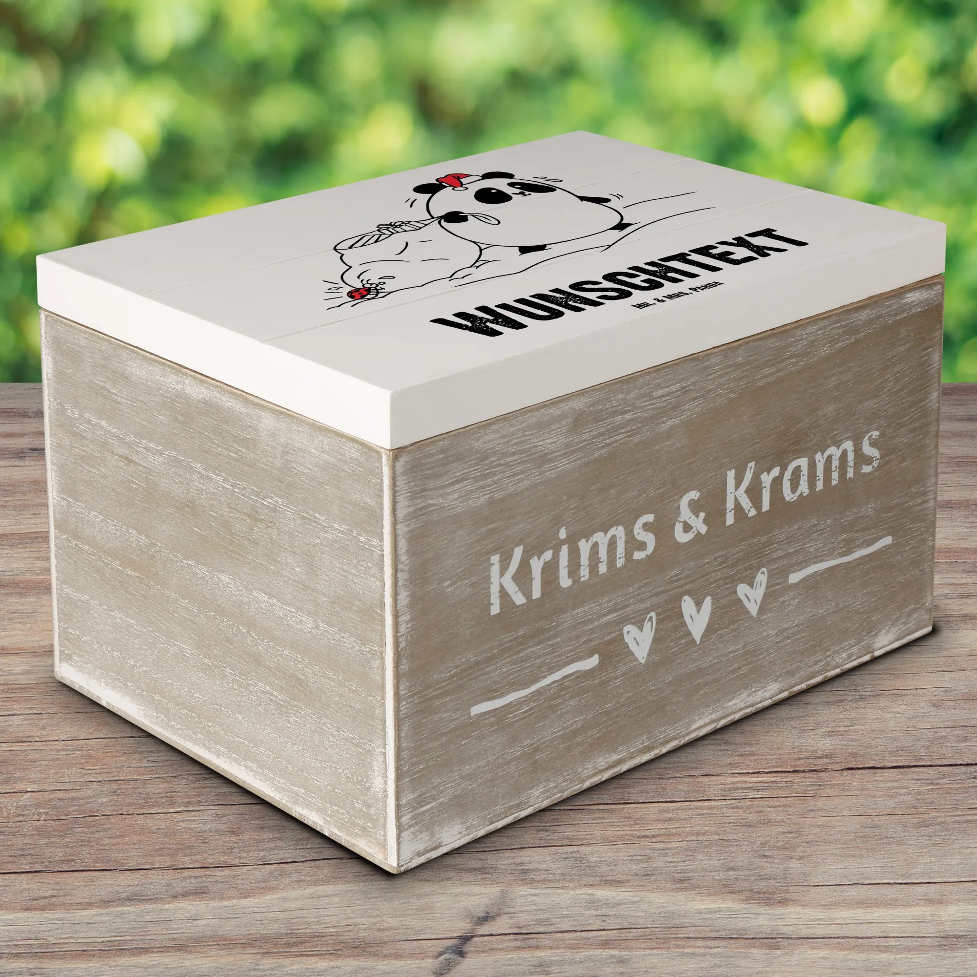 Introducing the Mr. & Mrs. Panda personalised wooden chest, your new favorite storage solution! At 190 mm x 120 mm x 100 mm, this exquisite chest is enhanced with enchanting prints and warm quotes. You can personalize it with your special name or message, making it an amazing gift. Made from solid wood fiber, it's the ideal place to keep your cherished possessions safe. It doubles as a delightful memory box for important events, mementos from childhood, or beautiful photographs! Its reliable construction makes it long-lasting. Plus, the flap hinges allow for easy access—open and close it with ease! While it isn't lockable, it serves as a fantastic, eco-friendly gift box. Available in various sizes and easy to maintain—simply clean with a damp cloth. Let this charming chest help you preserve your treasured moments.