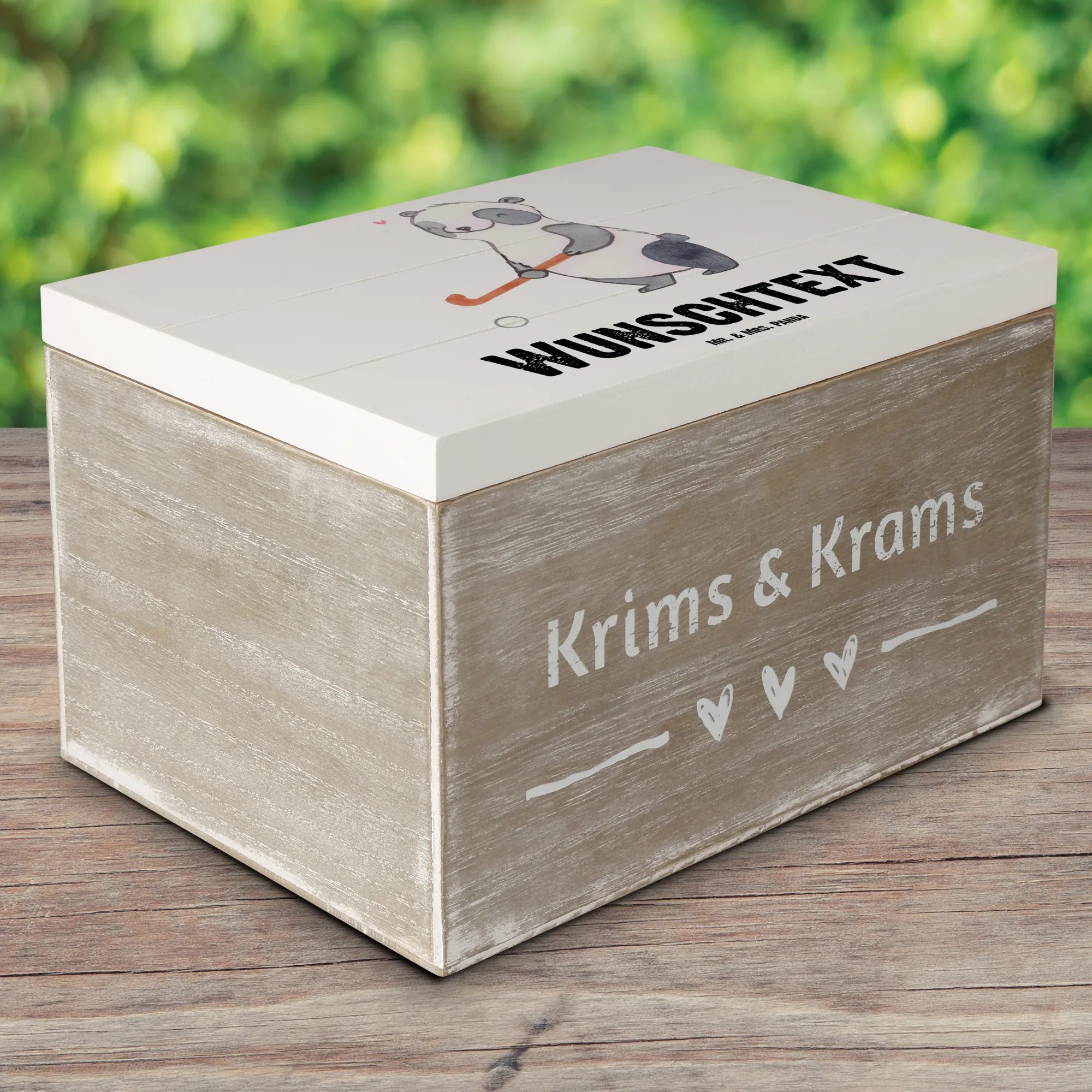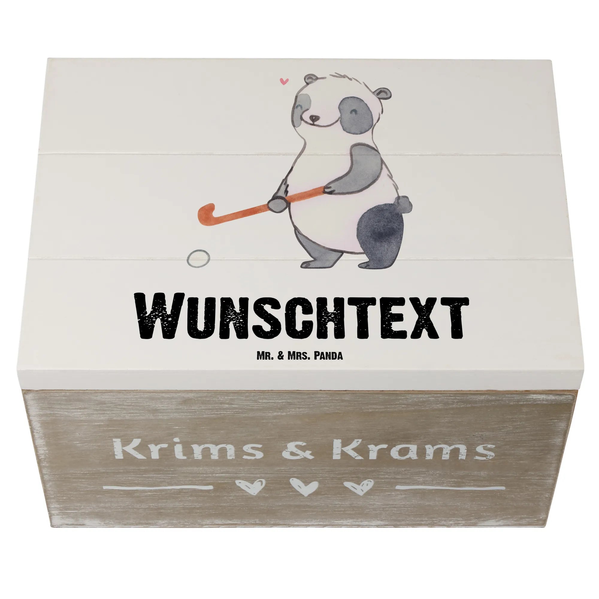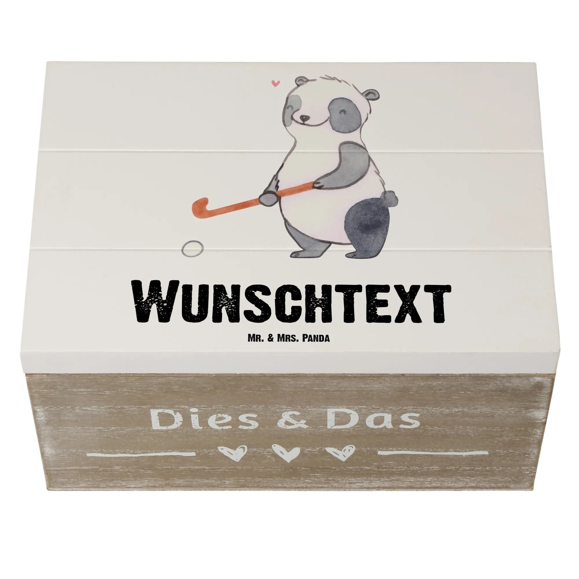 Personalised wooden chest panda play hockey - 19 x 12 cm - White