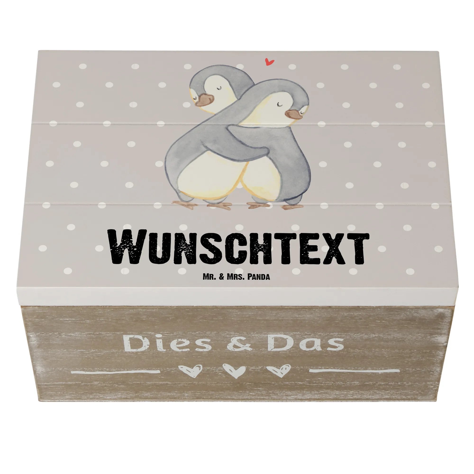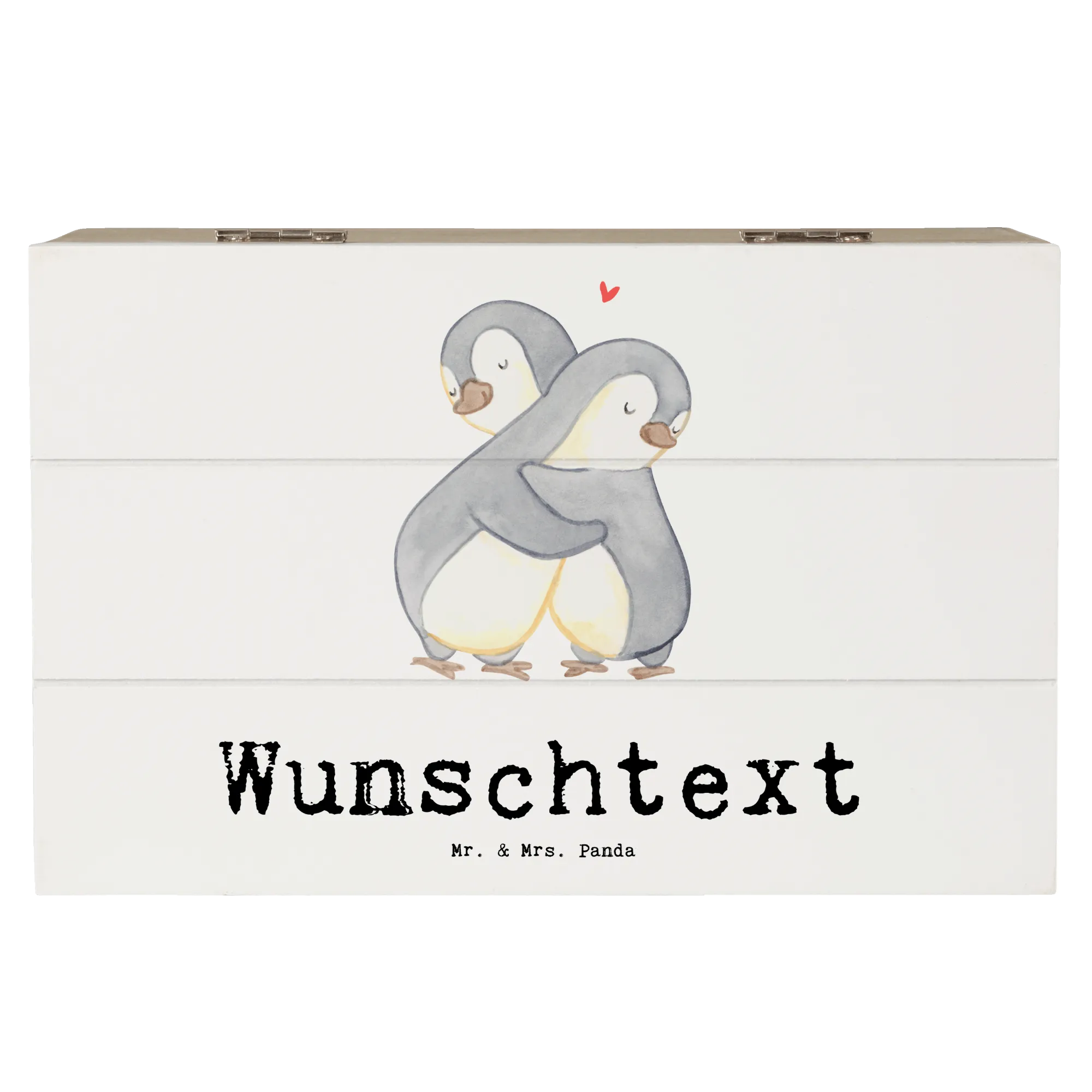 Personalised wooden chest penguin best cousin in the world - 22 x 15 cm - White