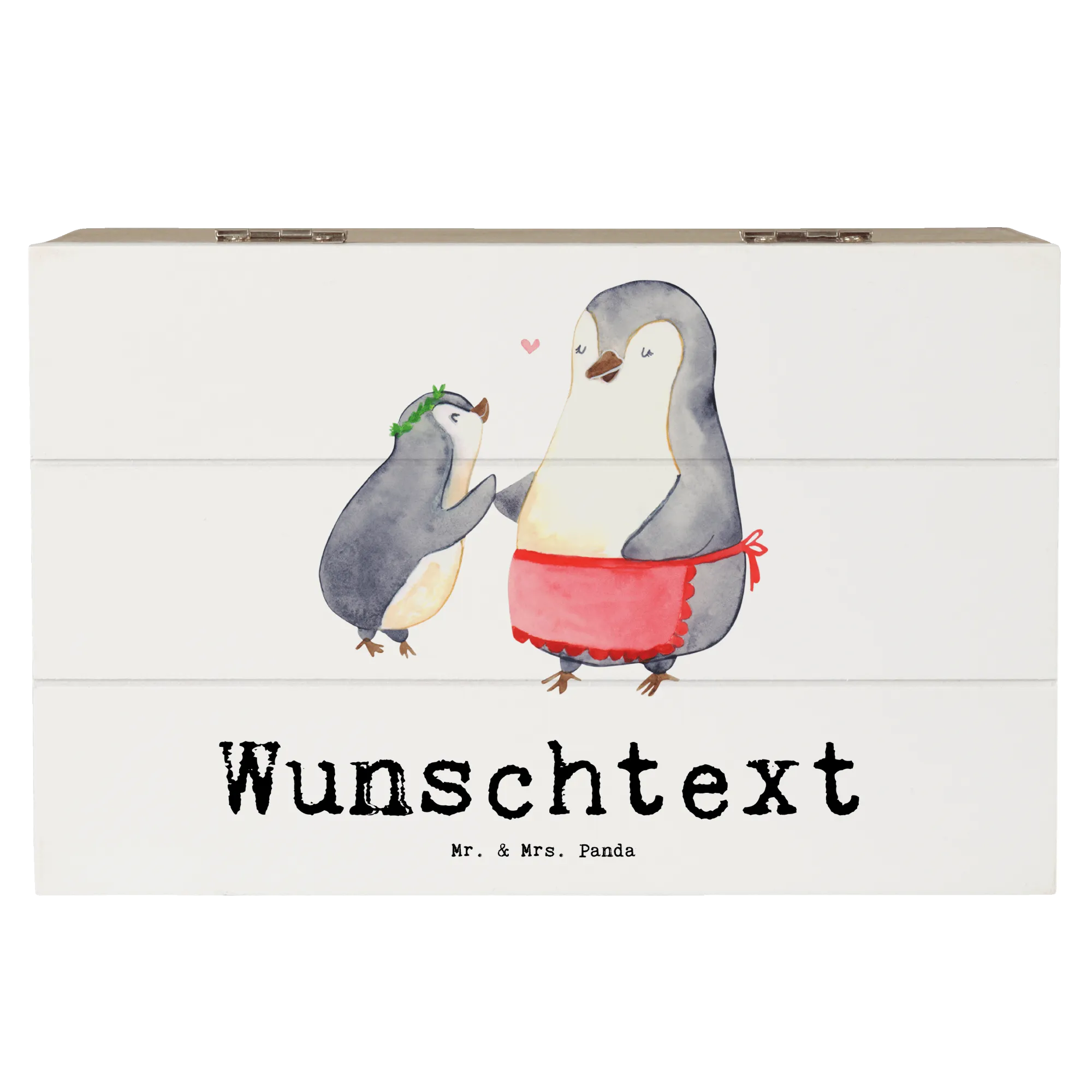Personalised wooden chest penguin Best mom in the world - 22 x 15 cm - White
