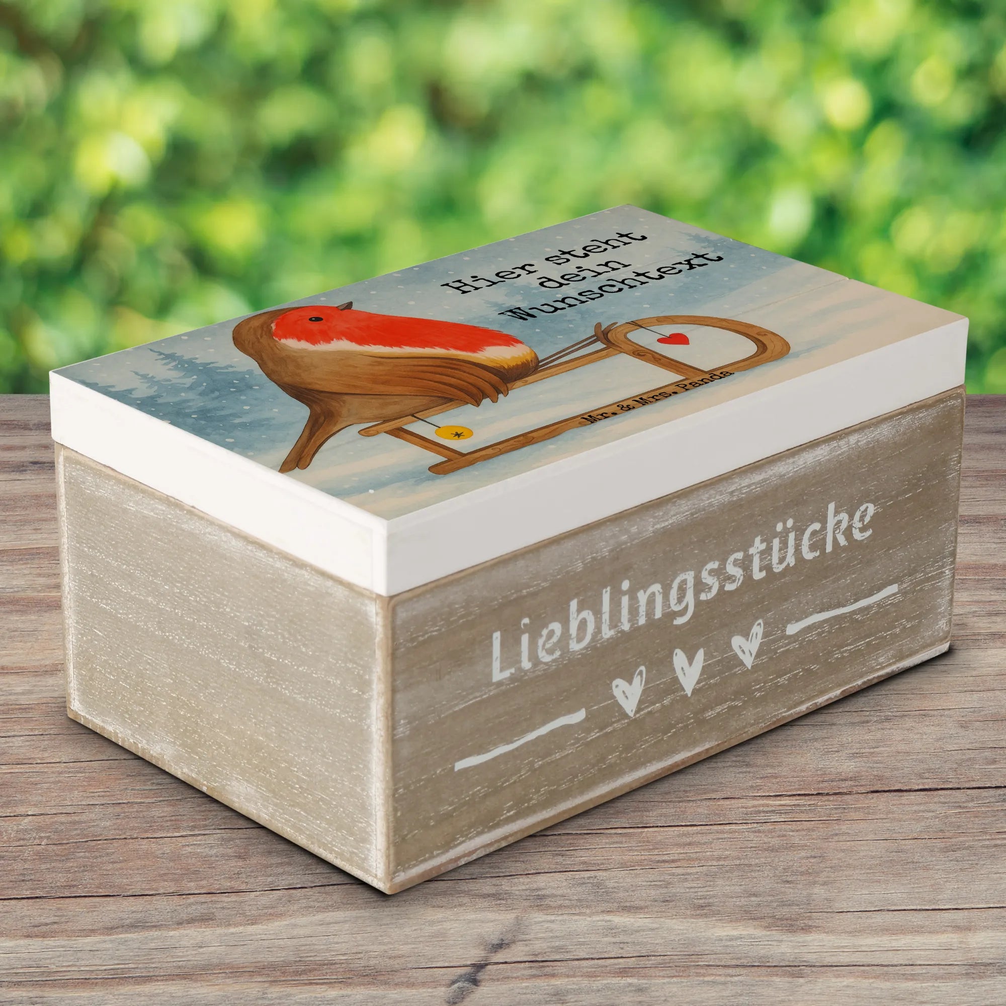 Personalised wooden chest robin Sleds Design - 22 x 15 cm