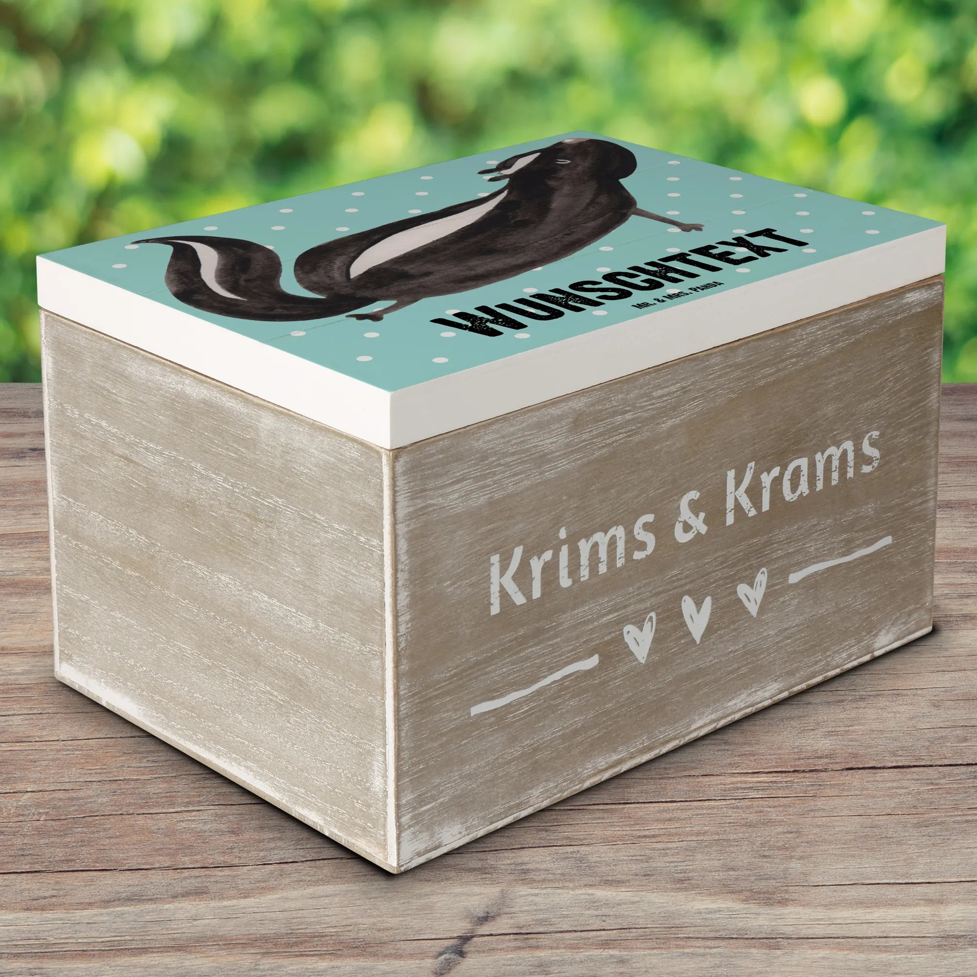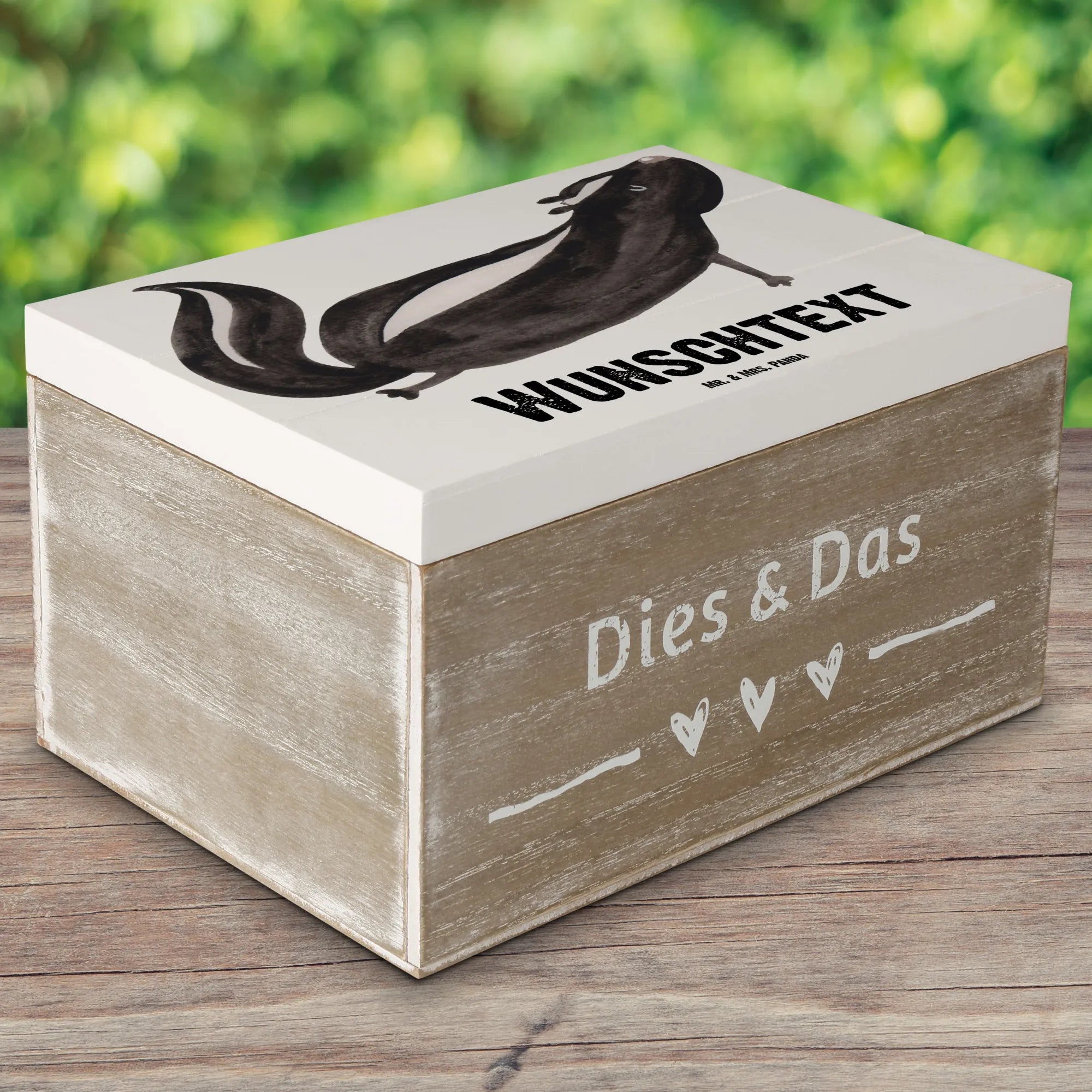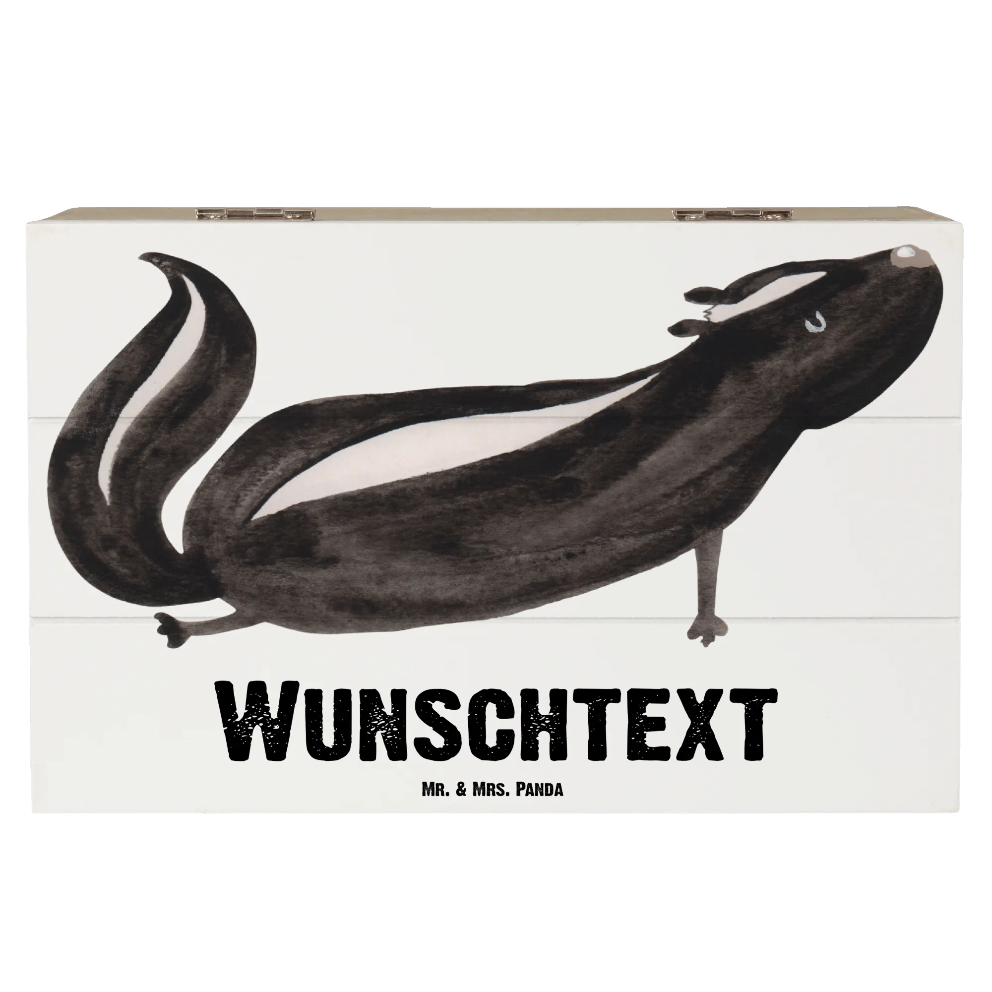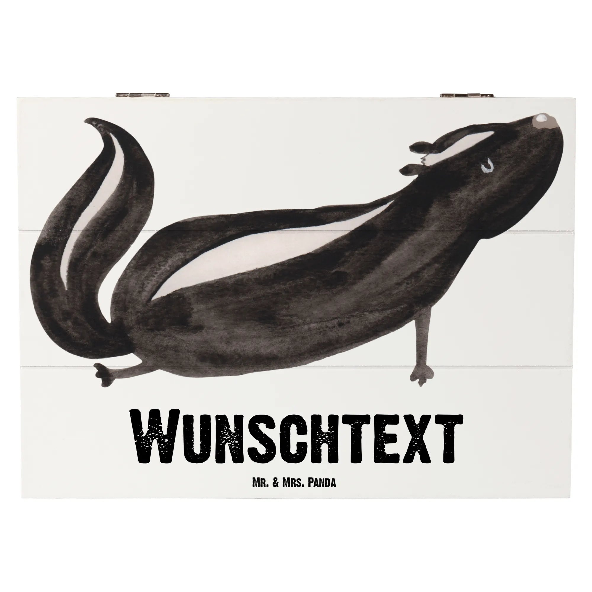 Personalised wooden chest skunk yoga - 22 x 15 cm - White