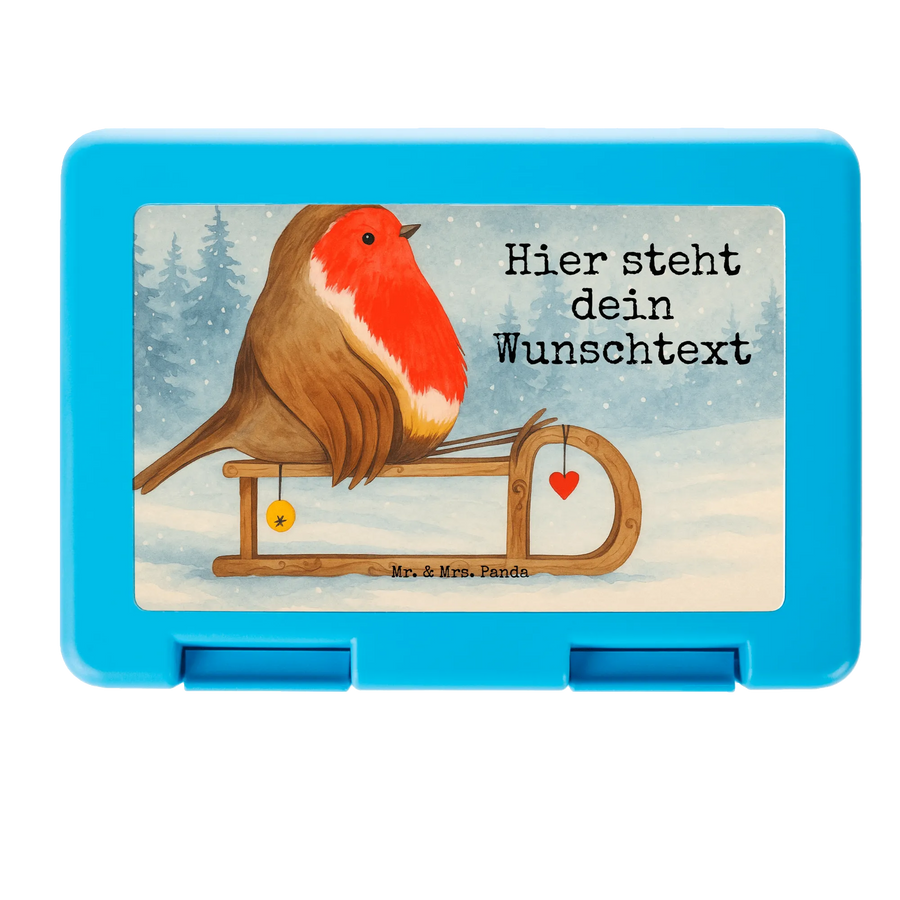 Personalisierte Brotdose Rotkehlchen Schlitten Design