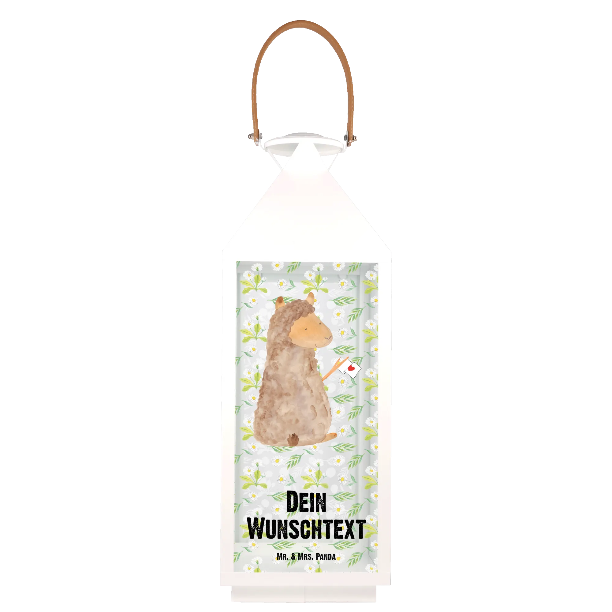 Die personalisierte Deko Laterne mit dem süßen Alpaka Motiv von Mr. & Mrs. Panda ist das perfekte Geschenk für jeden, der das Besondere im Leben liebt. Egal, ob du ein Geschenk für einen Freund, ein Familienmitglied oder einfach für dich selbst suchst, diese Laterne bringt Freude und eine liebevolle Atmosphäre in jedes Zuhause.