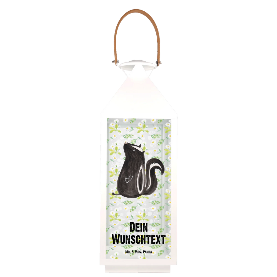 Die personalisierte Deko Laterne »Stinktier sitzend« aus der Stinktier-Kollektion von Mr. & Mrs. Panda ist das perfekte Geschenk für alle, die ihren Garten, Balkon oder ihre Terrasse liebevoll dekorieren möchten.