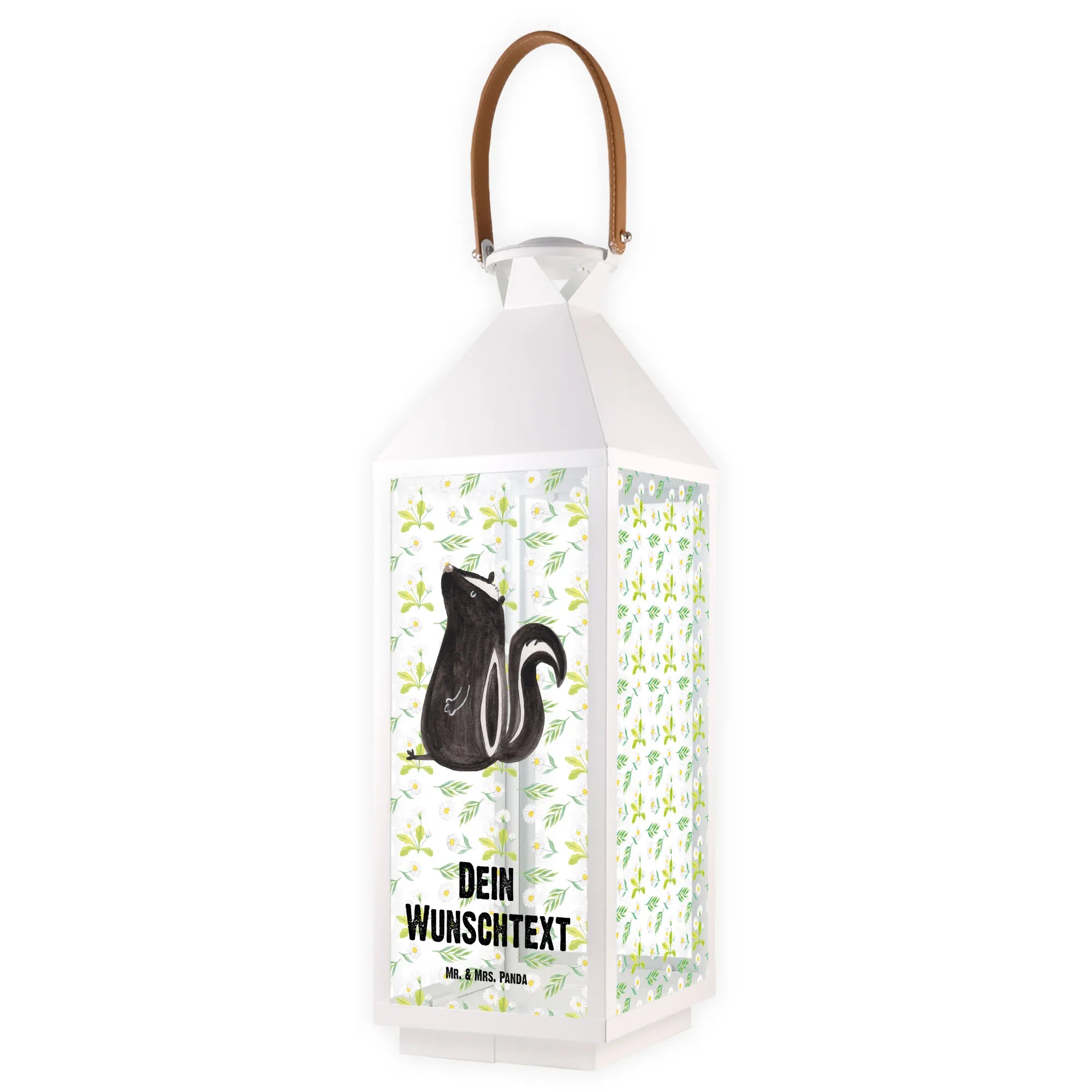 Die Stinktier-Kollektion von Mr. & Mrs. Panda ist eine liebevolle Hommage an das treue Haustier von Mrs. Panda, Herrn Blume. Jedes Motiv in dieser Kollektion wurde mit viel Liebe und Sorgfalt entworfen und druckt die fröhliche Essenz dieser besonderen Tiere aus. Wenn du also etwas Einzigartiges suchst, das auch noch eine Geschichte erzählt, dann ist diese Laterne genau das, was du brauchst.