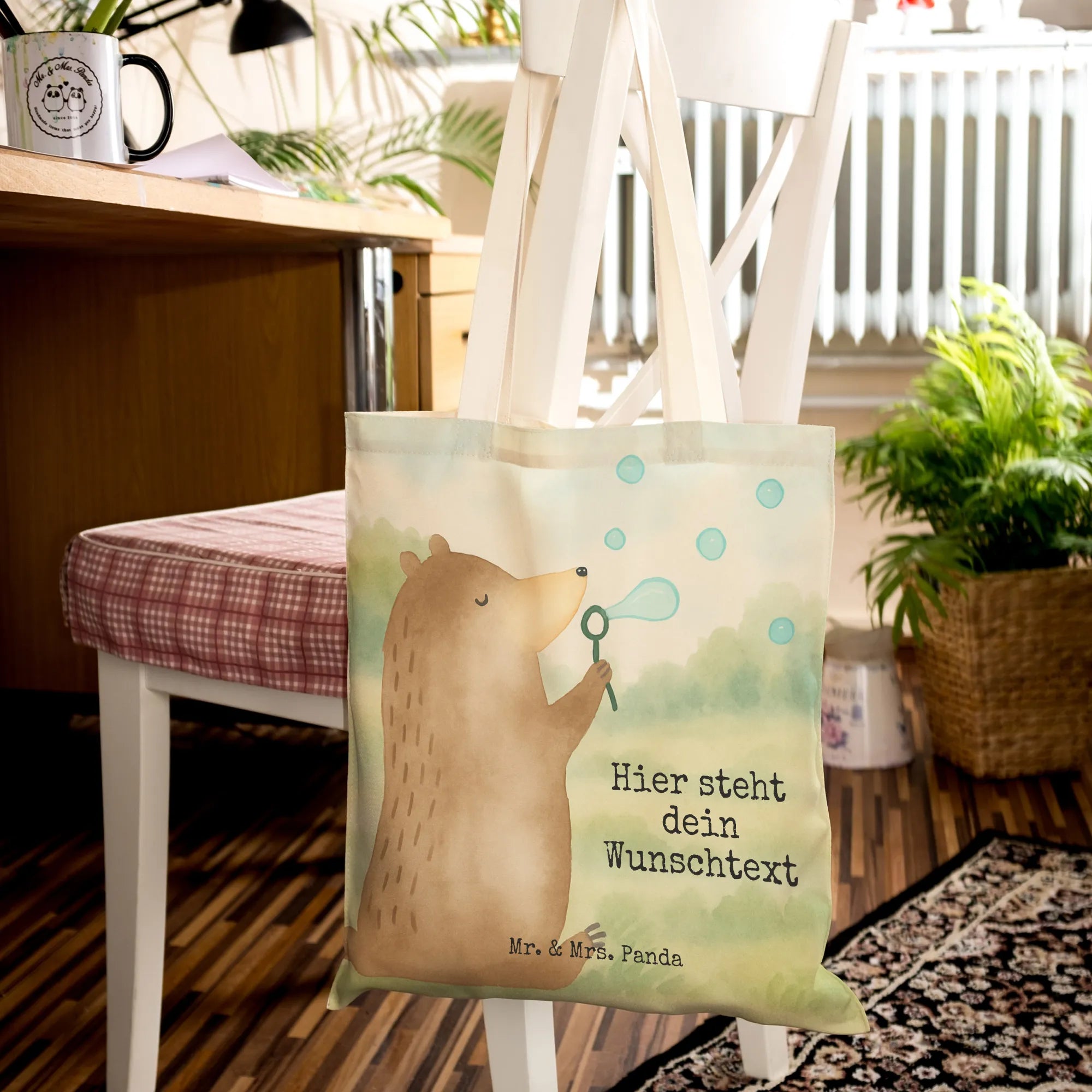 Personalisierte Einkaufstasche Bär Seifenblasen Design
