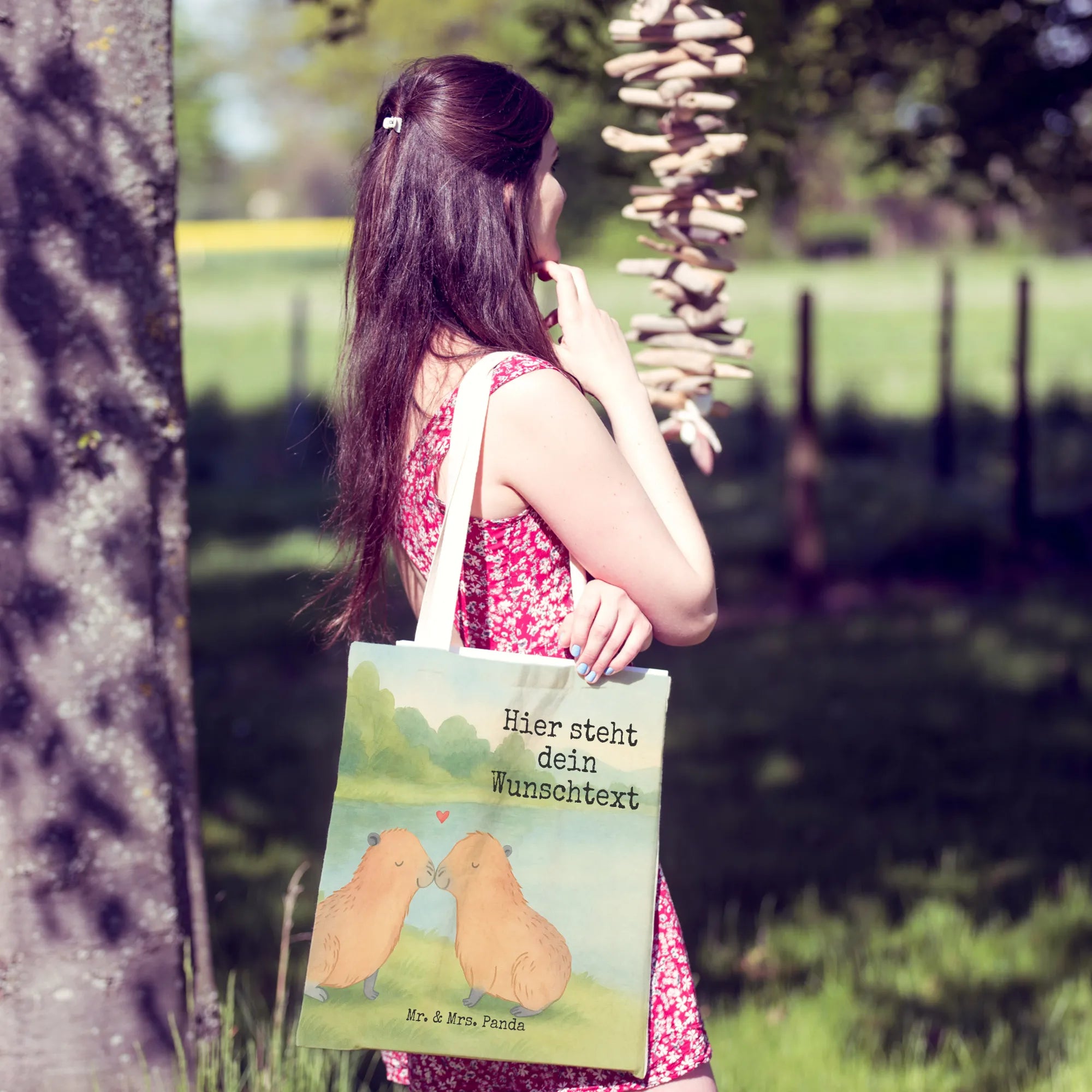 Personalisierte Einkaufstasche Capybara Liebe Design – Mr. & Mrs. Panda
