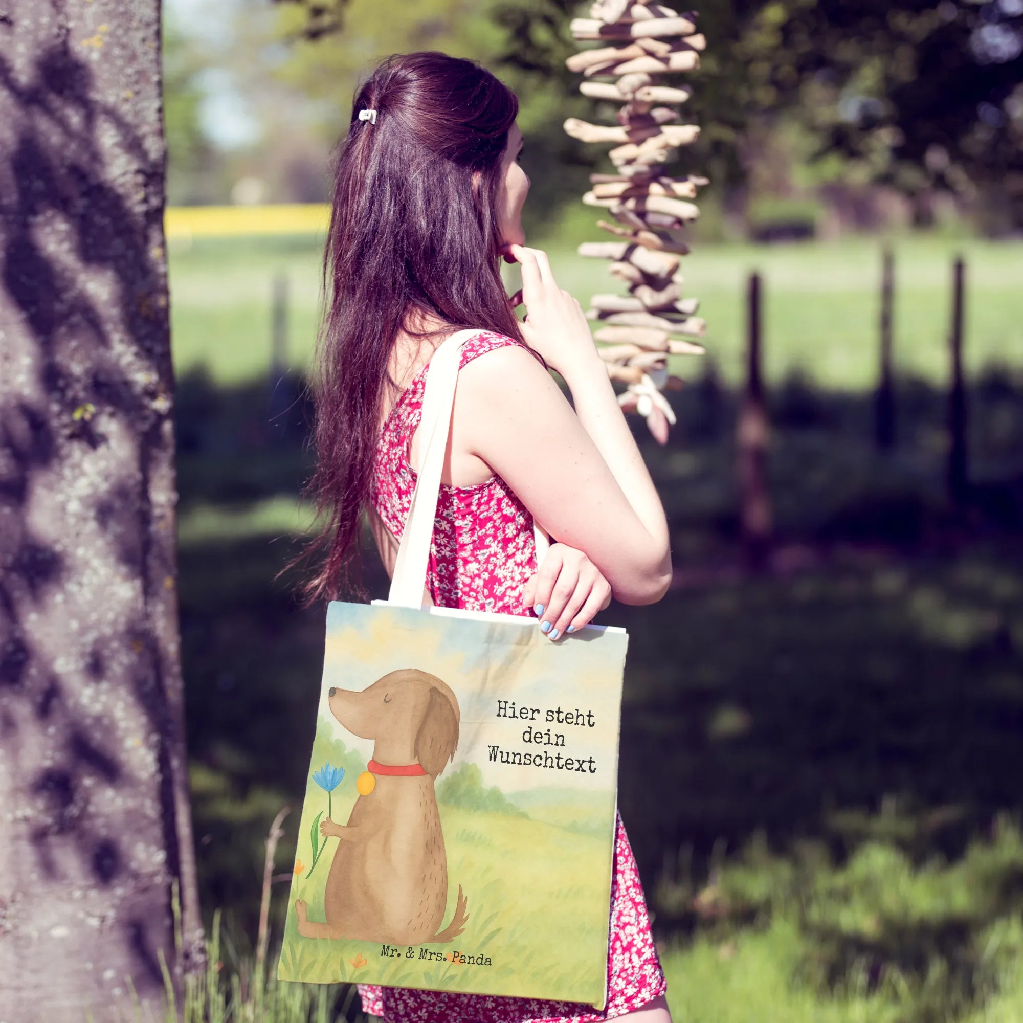 Personalisierte Einkaufstasche Hund Blume Design