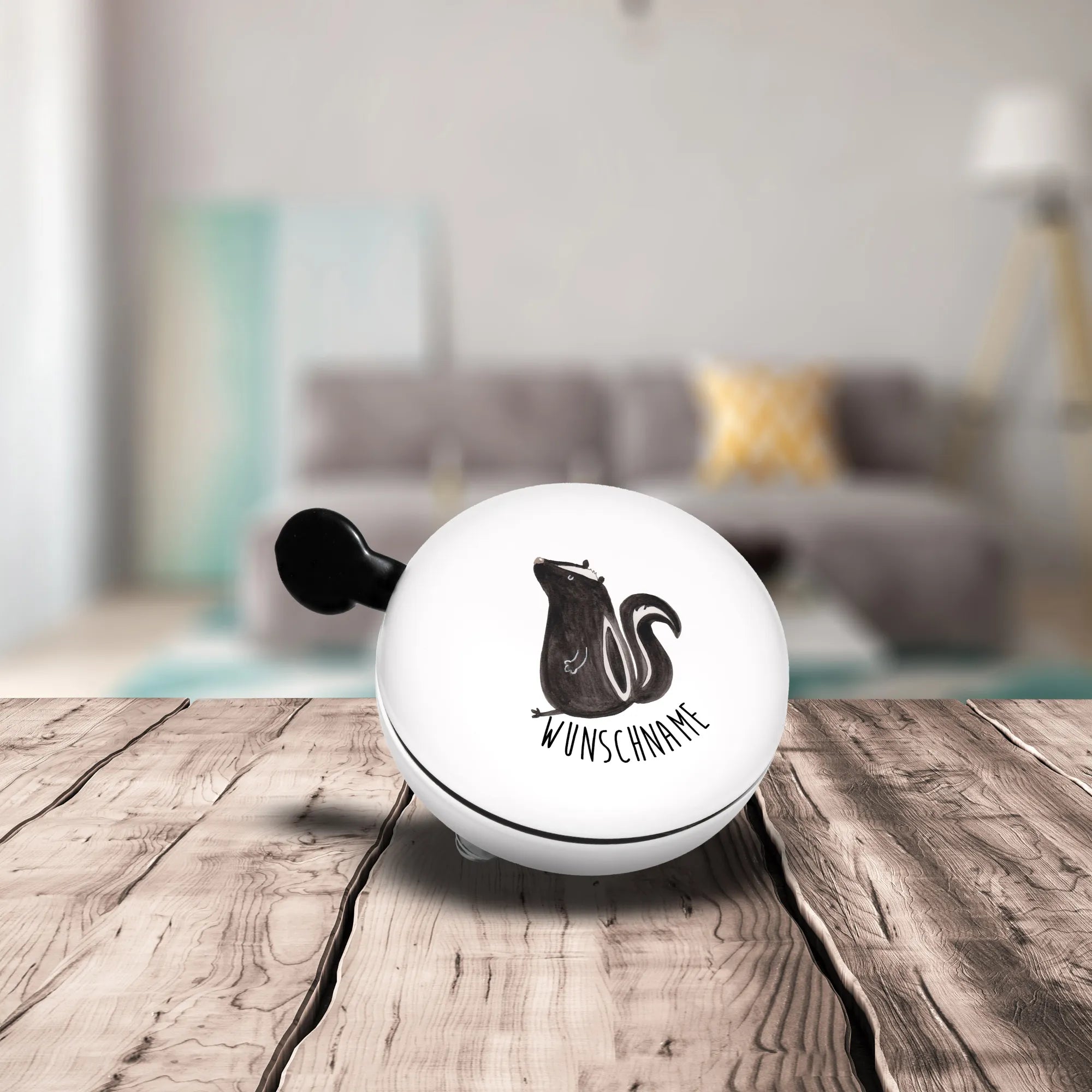 Die personalisierte Fahrradklingel mit dem süßen Motiv des sitzenden Stinktieres ist das perfekte Geschenk für alle Fahrradliebhaber mit einem Sinn für Humor! Diese individuelle Fahrradklingel bietet nicht nur einen strahlenden Druck und einen schönen Glockenklang, sondern lässt sich auch mit deinem persönlichen Namen oder Wunschtext gestalten. Mit einem Durchmesser von 120 mm und einem Klemmendurchmesser von 80 mm ist sie ideal für jedes Fahrrad.