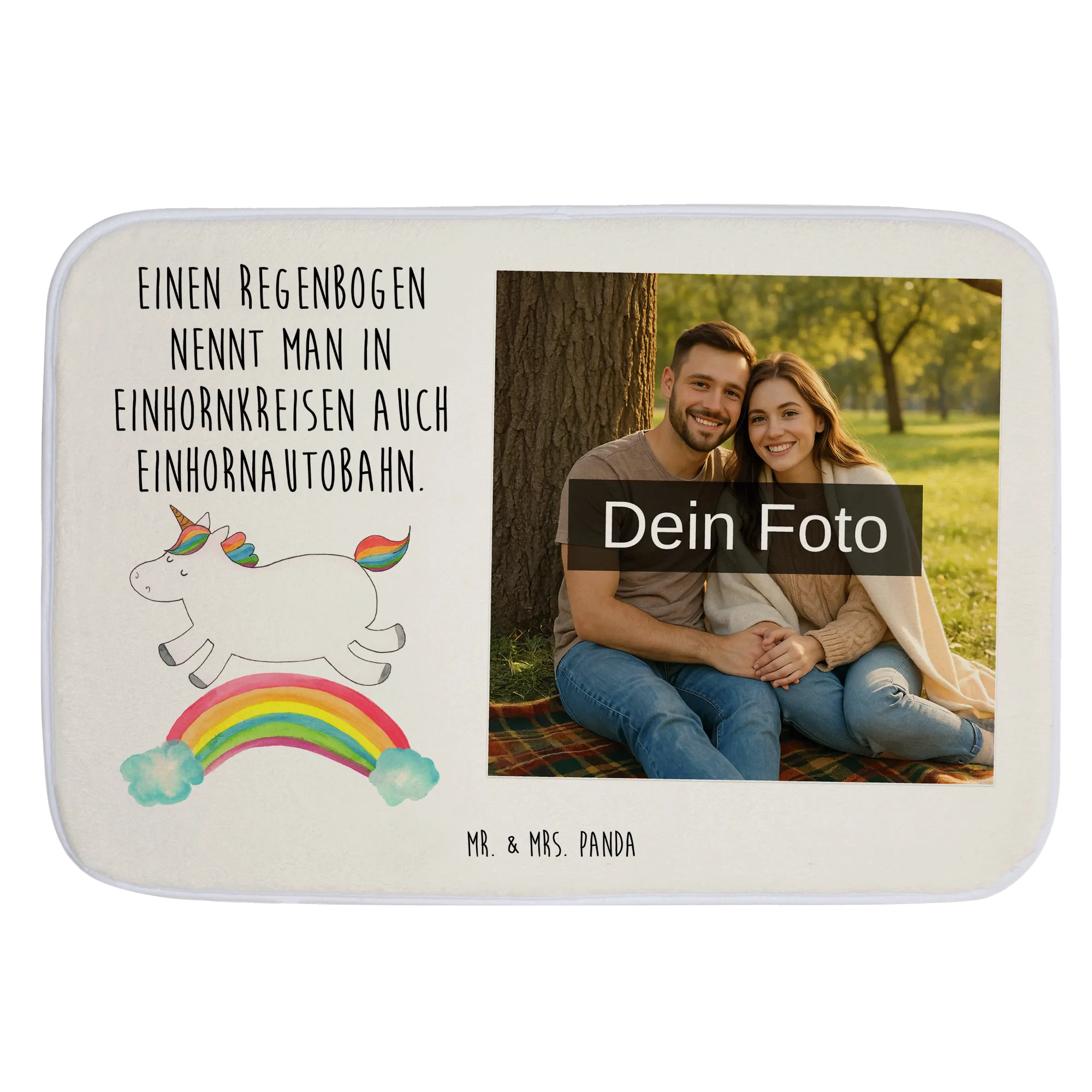 Personalisierte Foto Badematte Einhorn Regenbogen – Mr. & Mrs. Panda