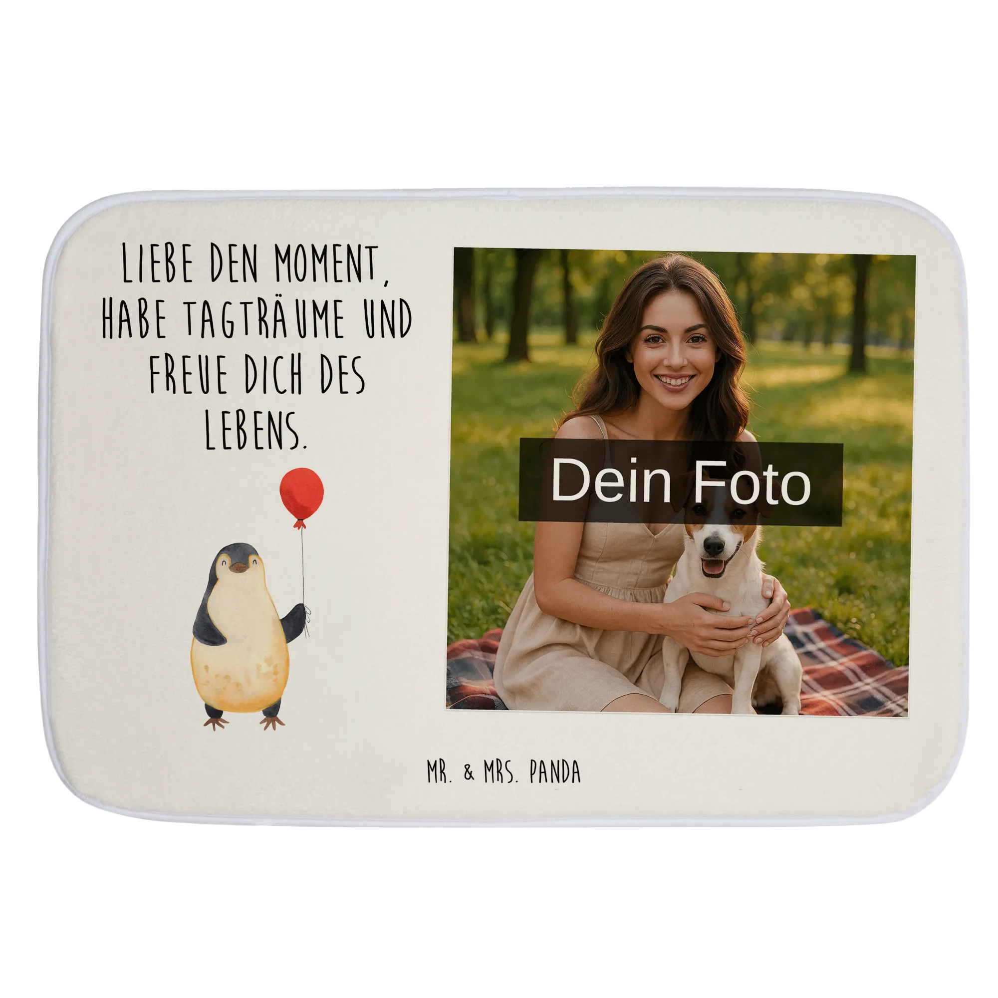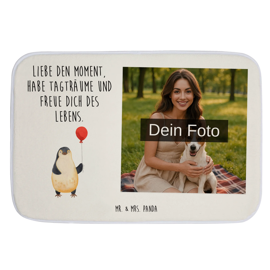 Personalisierte Foto Badematte Pinguin Luftballon