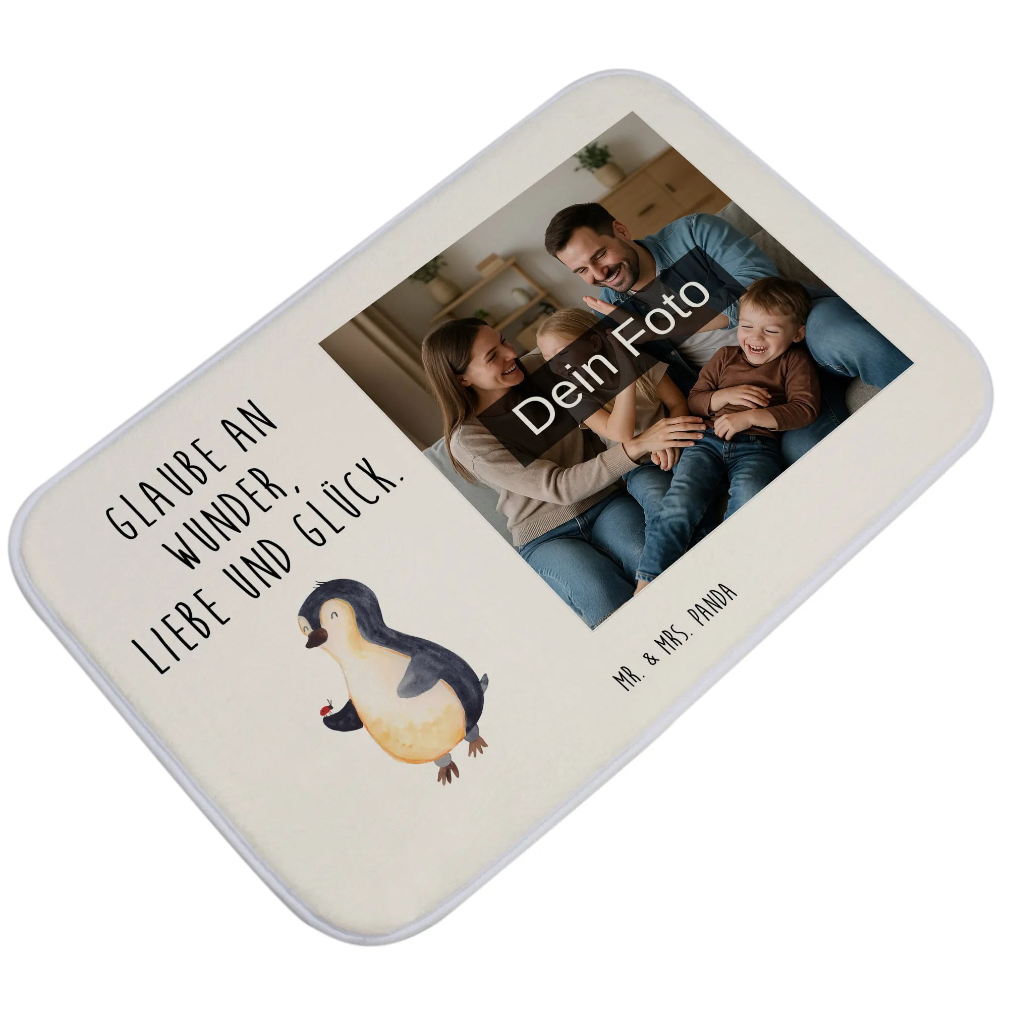 Personalisierte Foto Badematte Pinguin Marienkäfer