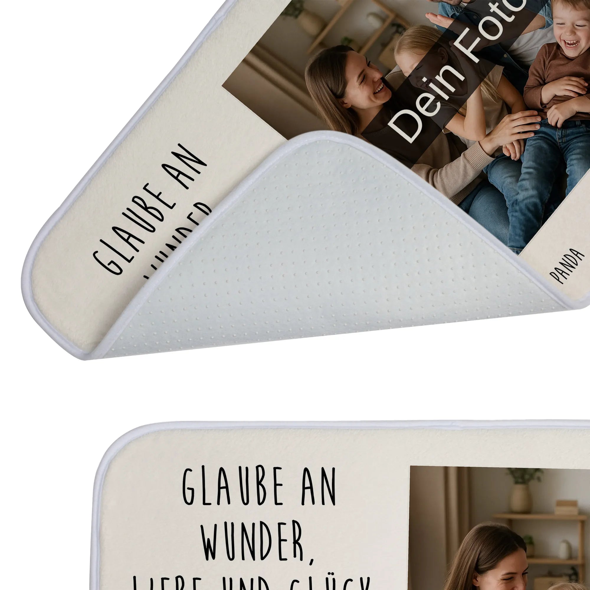 Mach dein Badezimmer zu einem ganz besonderen Ort mit unserer personalisierten Foto Badematte von Mr. & Mrs. Panda! Diese Badematte ist nicht nur ein praktischer Helfer, sondern auch ein echter Hingucker. Mit einer Größe von 590 mm x 400 mm sorgt sie für ein angenehmes Gefühl an den Füßen. Über die flauschige Premium Kunstfaser kannst du dein Lieblingsfoto drucken lassen, sodass du jeden Tag ein Stück deiner schönsten Erinnerungen beim Betreten des Badezimmers genießen kannst. Die besondere Antirutsch Gummibeschichtung macht die Matte besonders sicher, sodass du dir keine Sorgen um Ausrutscher machen musst. Die liebevolle Gestaltung und die hohe Saugfähigkeit der Matte machen sie zu einem Must-Have für jedes Badezimmer. Beachte beim Hochladen deines Fotos, dass es in hoher Qualität vorliegt und gut ins Bildformat passt. Dein Badezimmer wird mit dieser personalisierten Matte nicht nur sichtbarer, sondern auch einladender. Pflege sie einfach bei 30°C in der Waschmaschine und genieße den Komfort, den sie dir bietet!