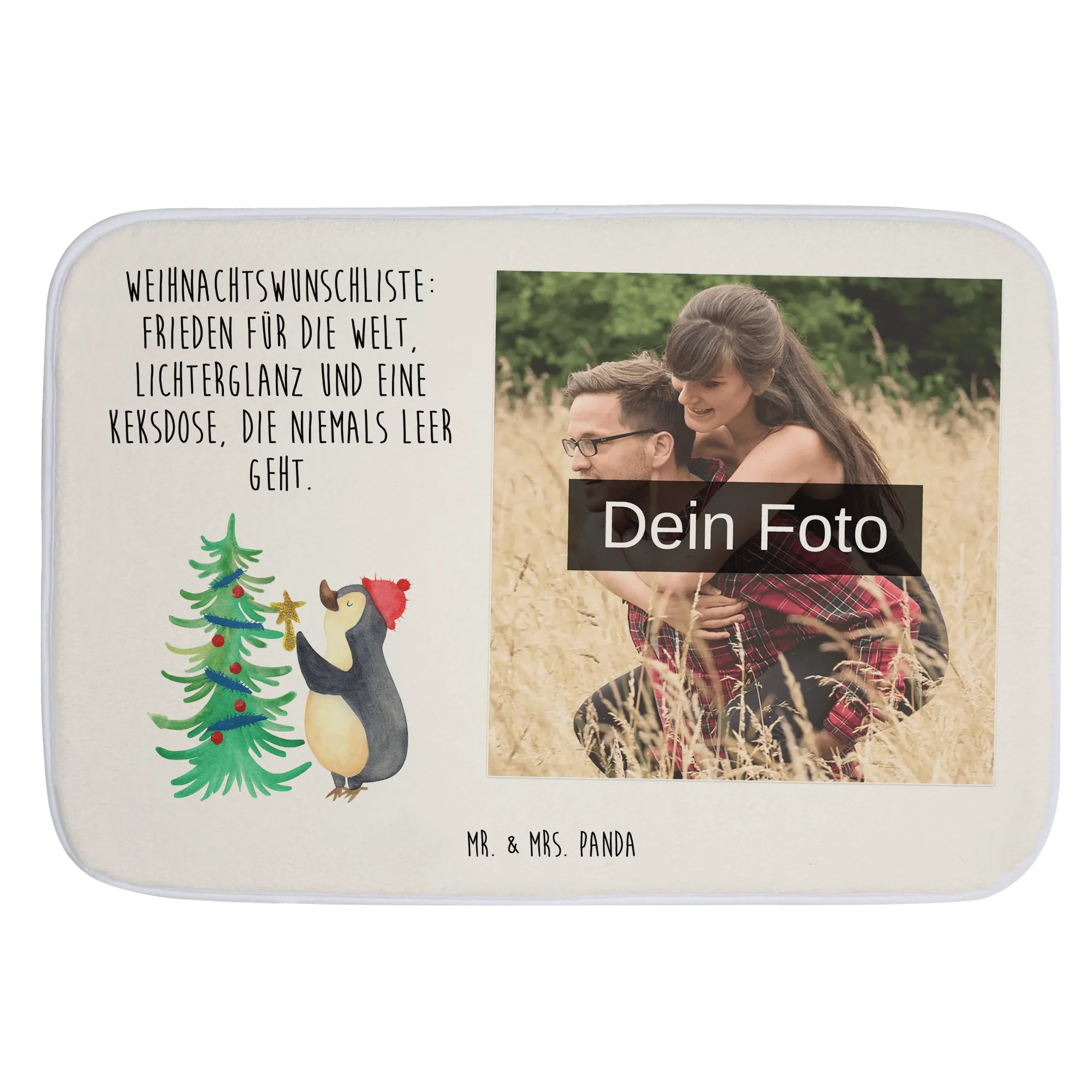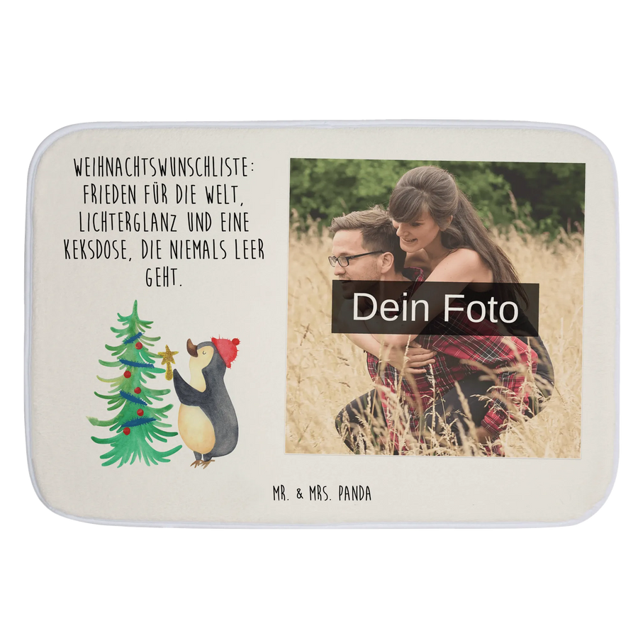 Personalisierte Foto Badematte Pinguin Weihnachtsbaum