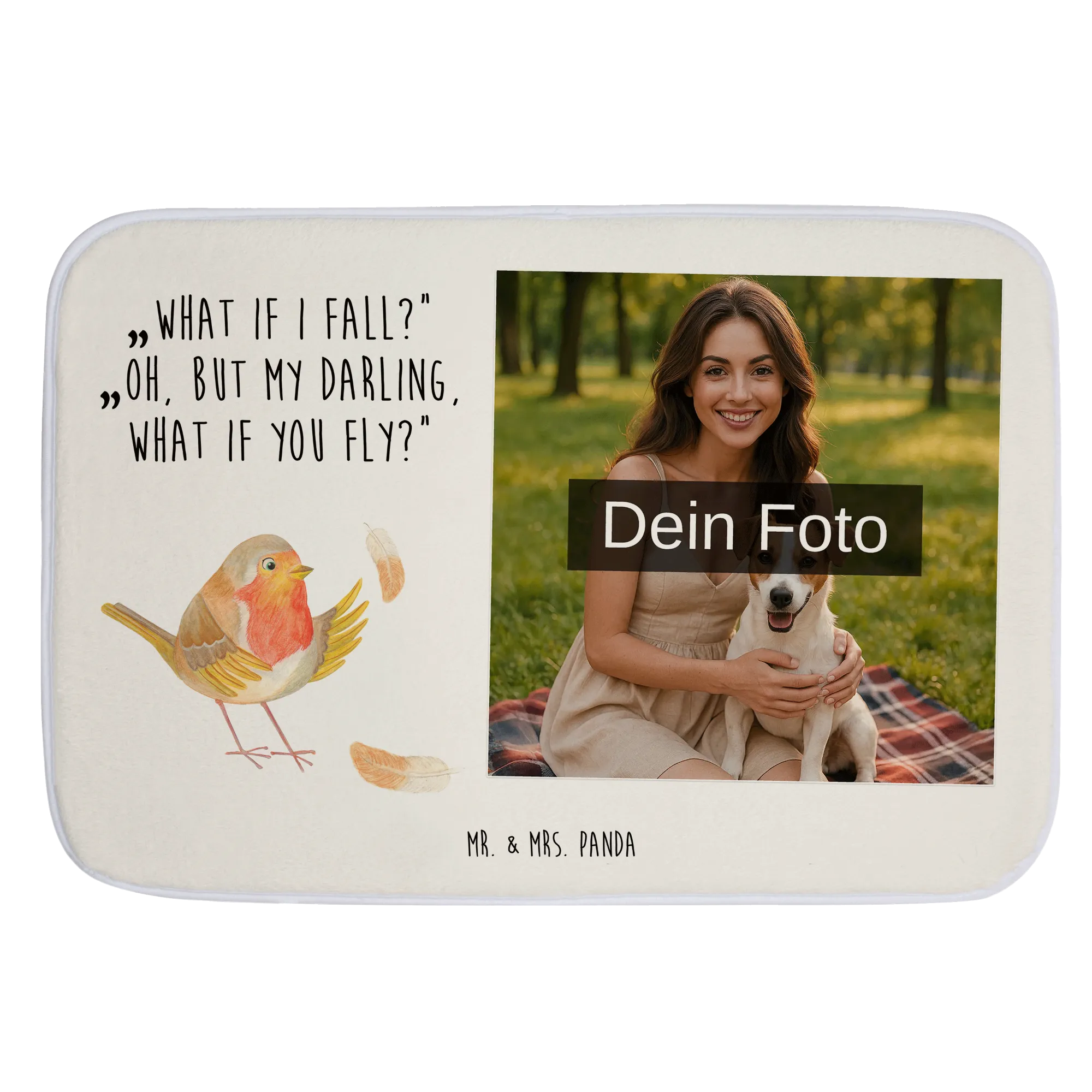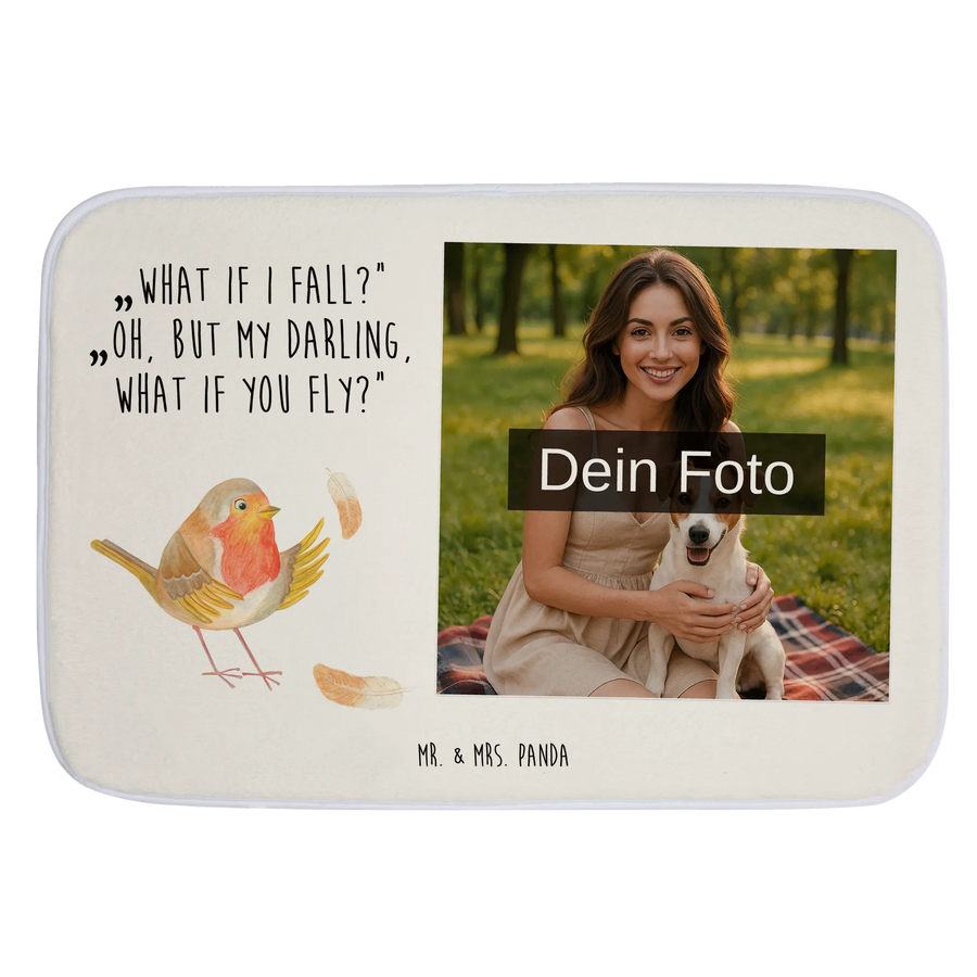 Personalisierte Foto Badematte Rotkehlchen Federn
