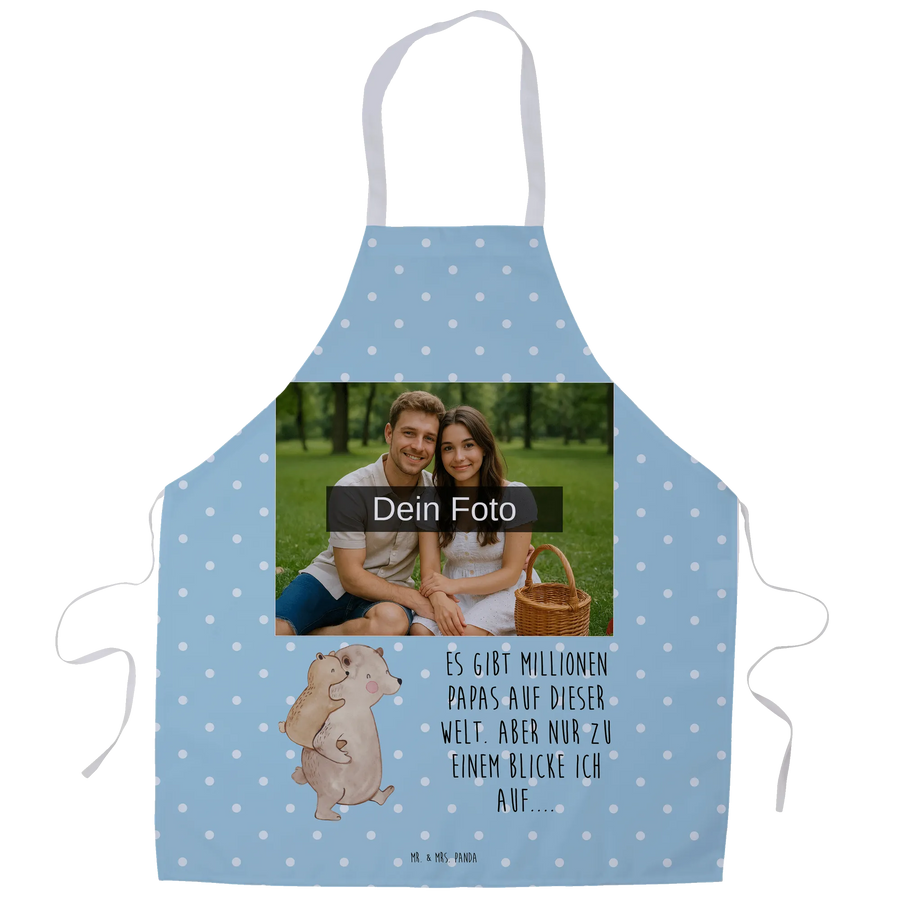 Personalisierte Foto Kochschürze Papa Bär - Blau Pastell