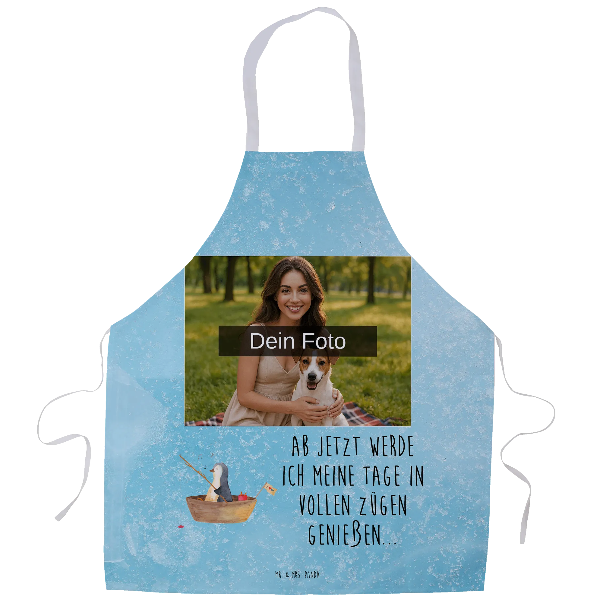 Personalisierte Foto Kochschürze Pinguin Angelboot